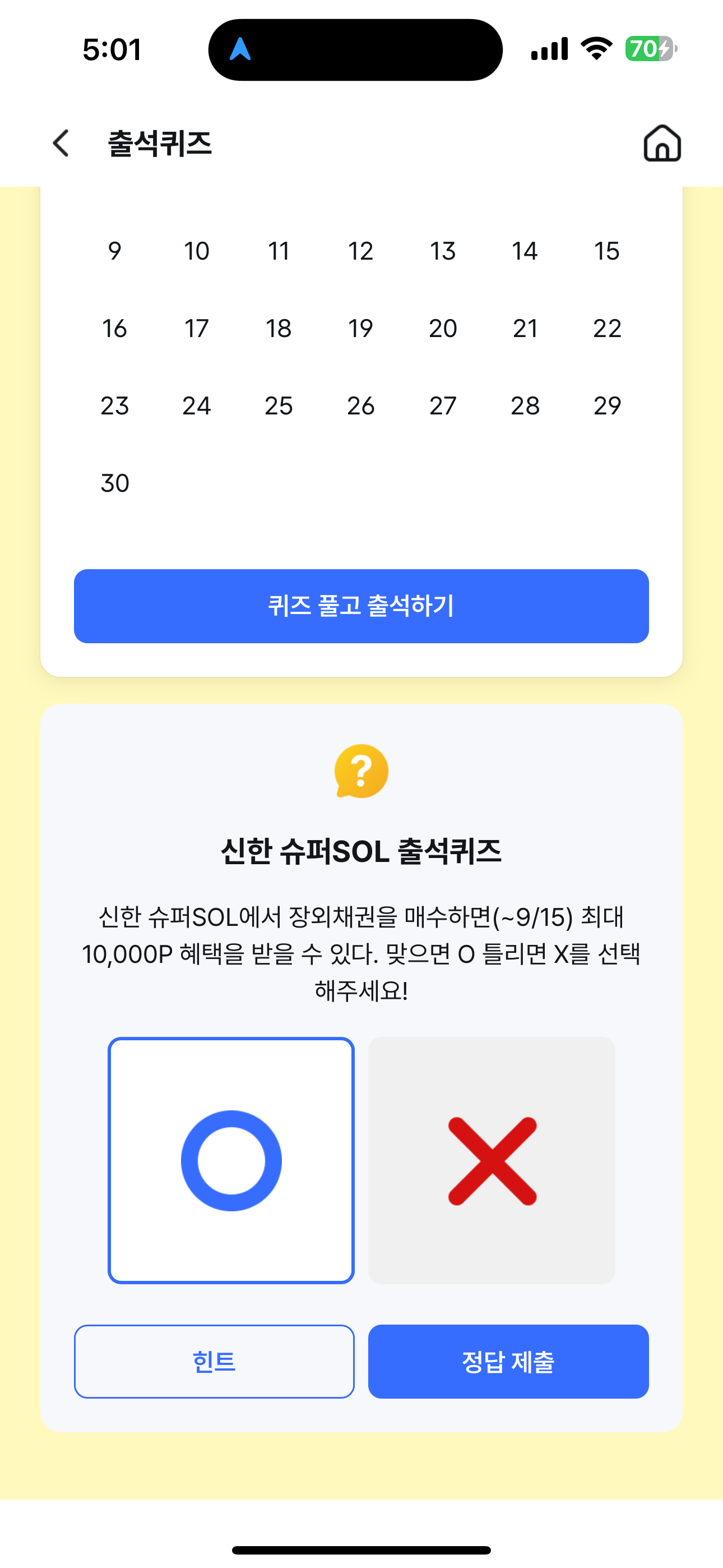신한 슈퍼SOL 출석퀴즈 정답은 O 입니다