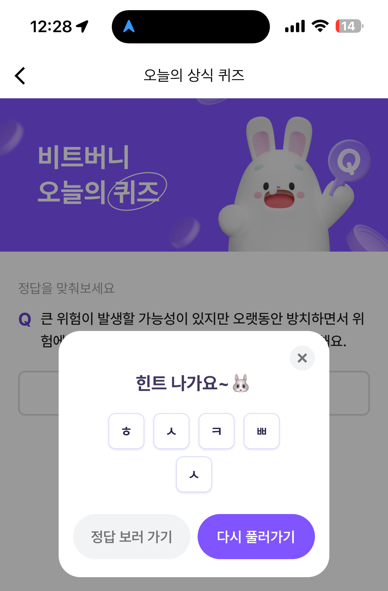 비트버니 오늘의 퀴즈 초성힌트는 ㅎㅅㅋㅃㅅ 입니다.