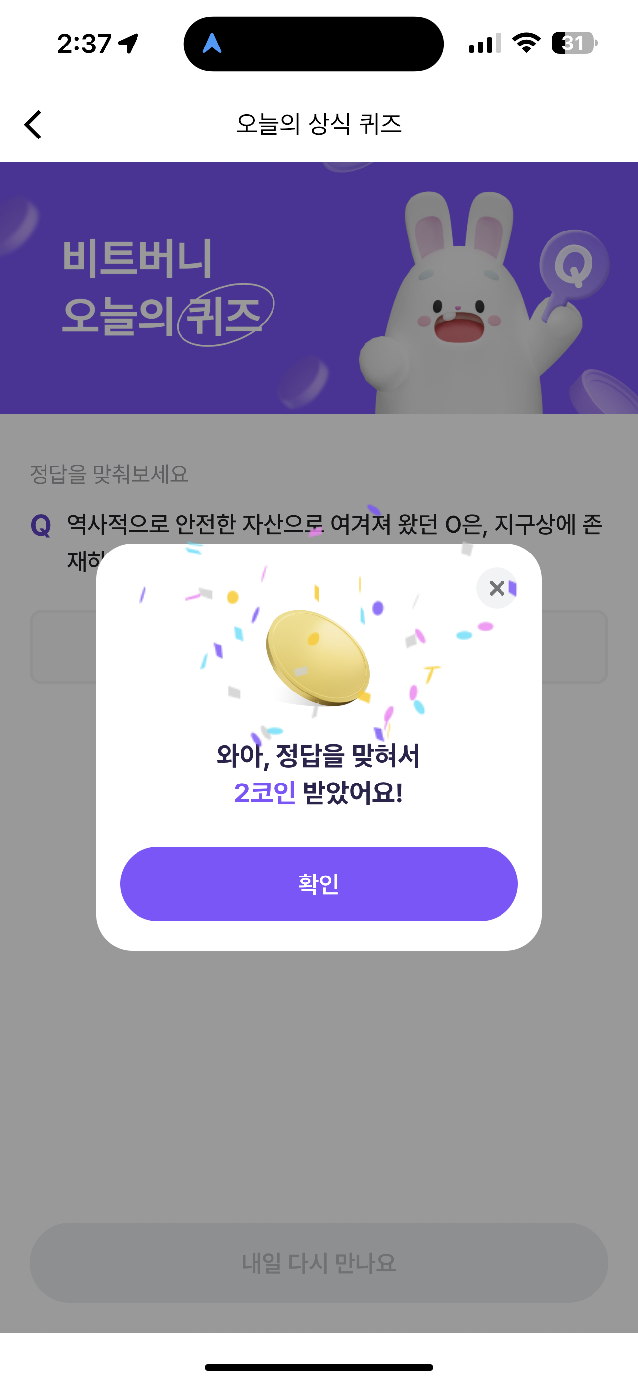비트버니 오늘의 퀴즈 정답은 금 입니다