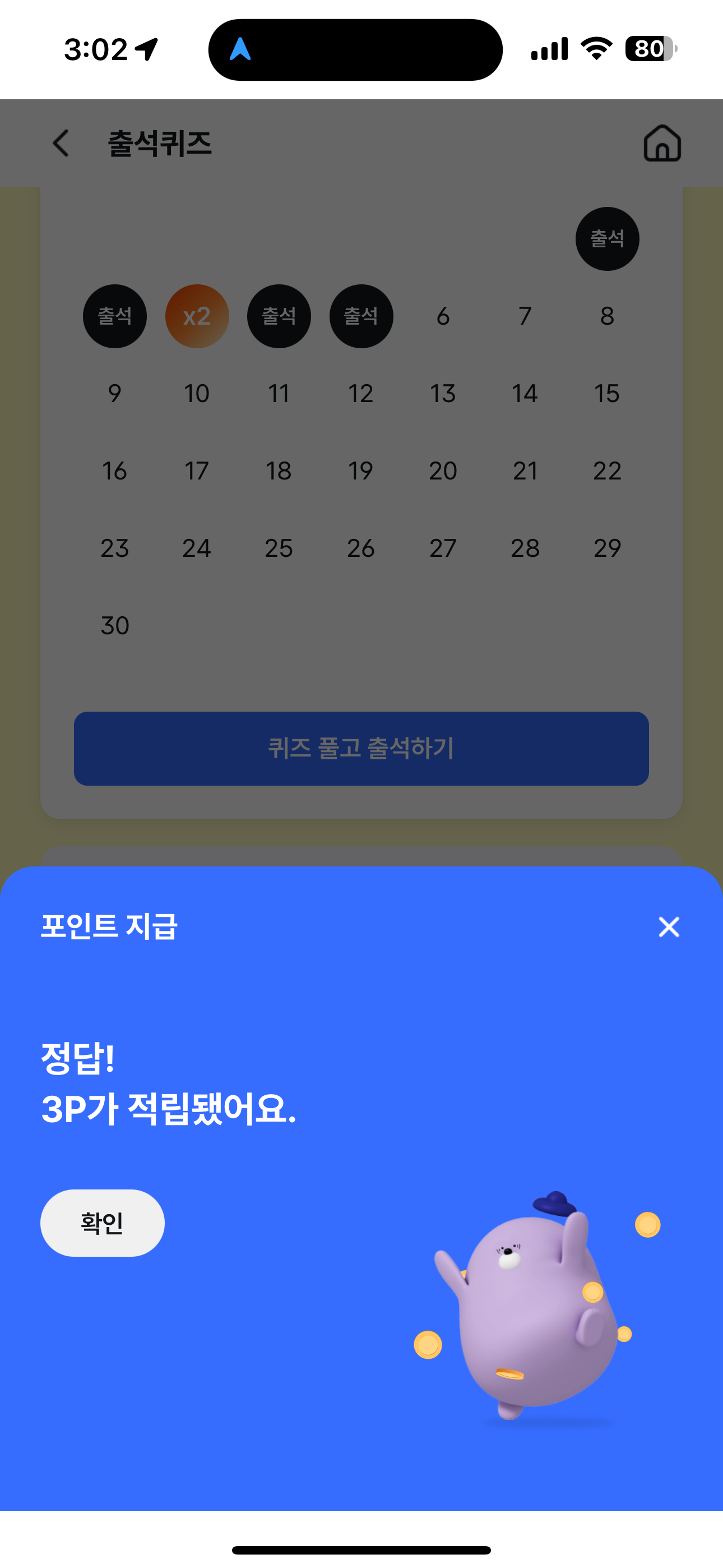 3P를 받았습니다. 포인트는 현금 전환 가능하니 꼭 받으시고요. 여러분의 재테크를 응원합니다