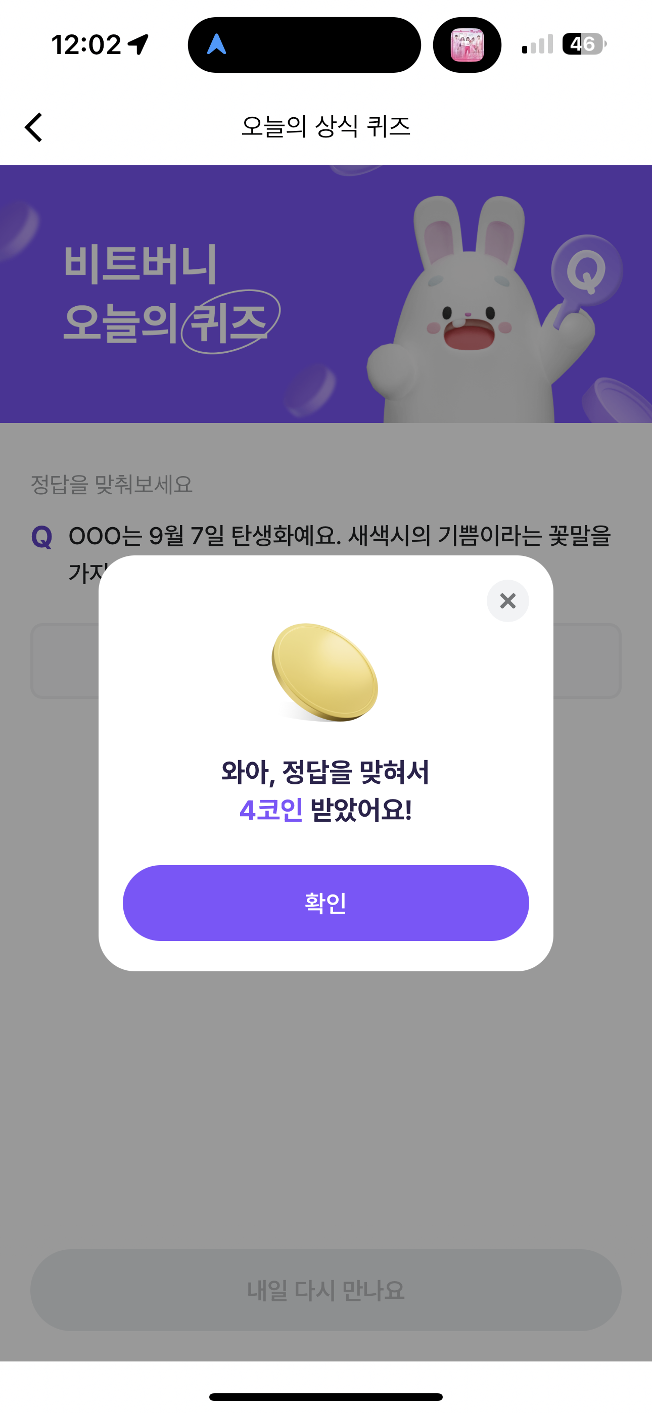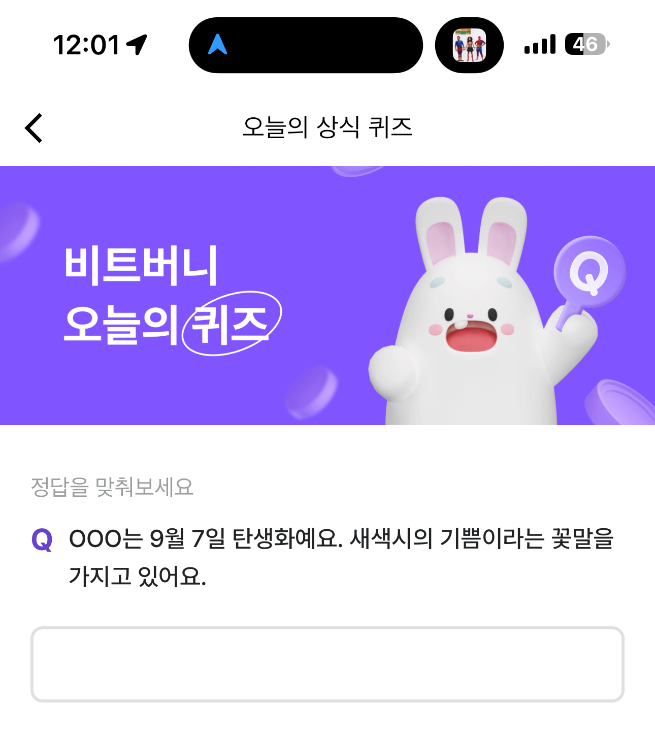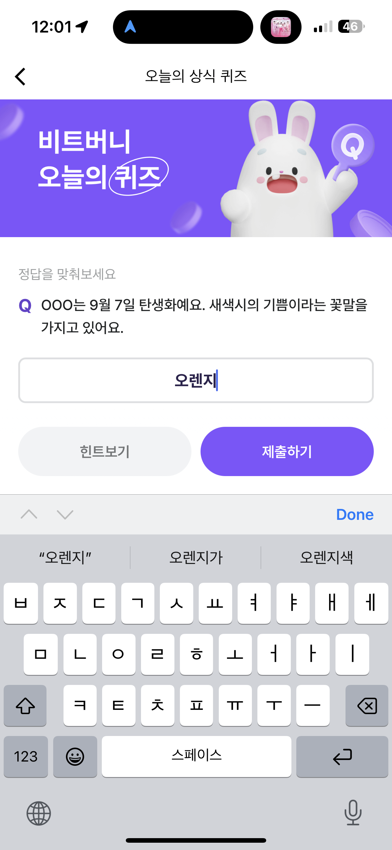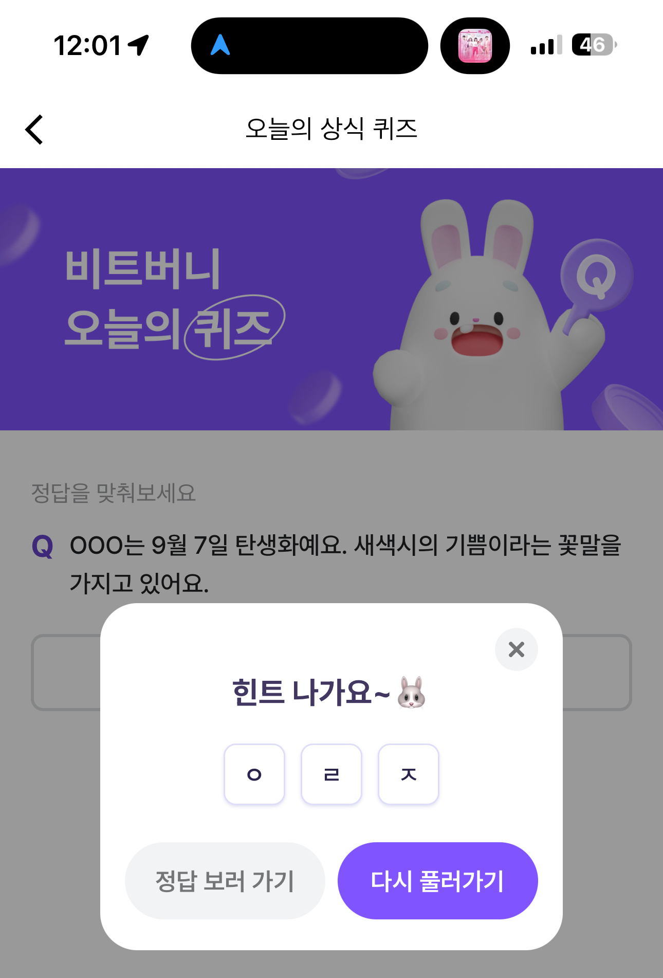 비트버니 오늘의 퀴즈 초성힌트는 ㅇㄹㅈ 입니다