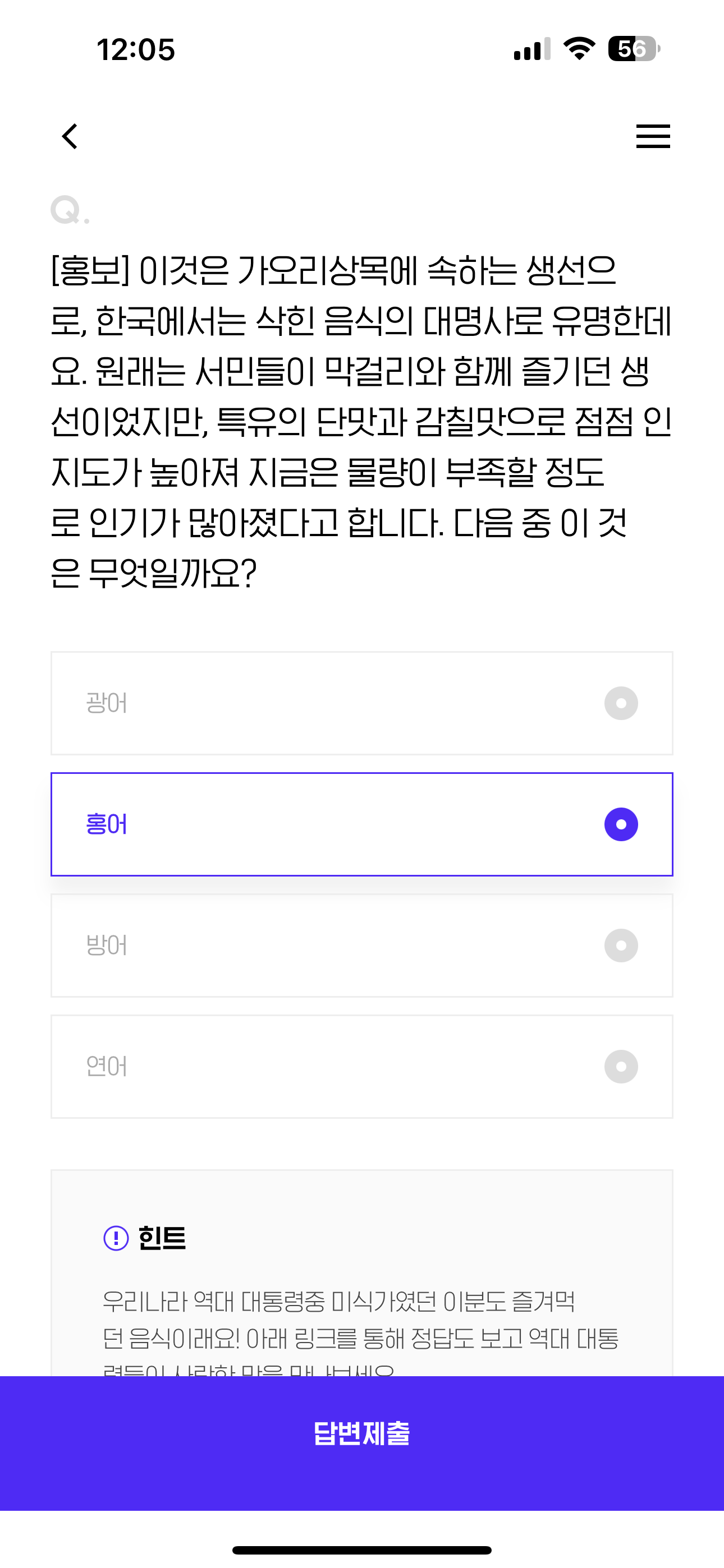 H포인트 퀴즈 9월 8일 정답(이것은 가오리상목에 속하는 생선으로, 한국에서는 삭힌 음식의 대명사로 유명한데요. 원래는 서민들이 막걸리와 함께 즐기던 생선이었지만)
