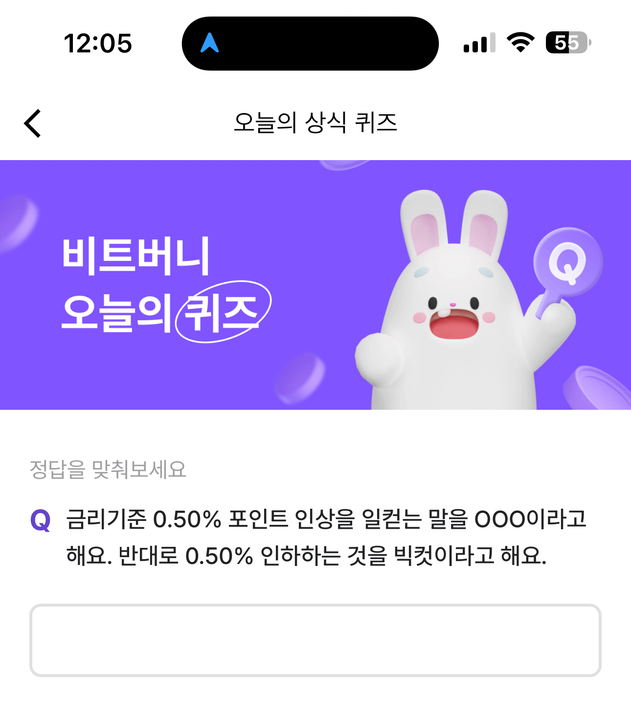비트버니 오늘의 퀴즈 정답은 빅스텝 입니다