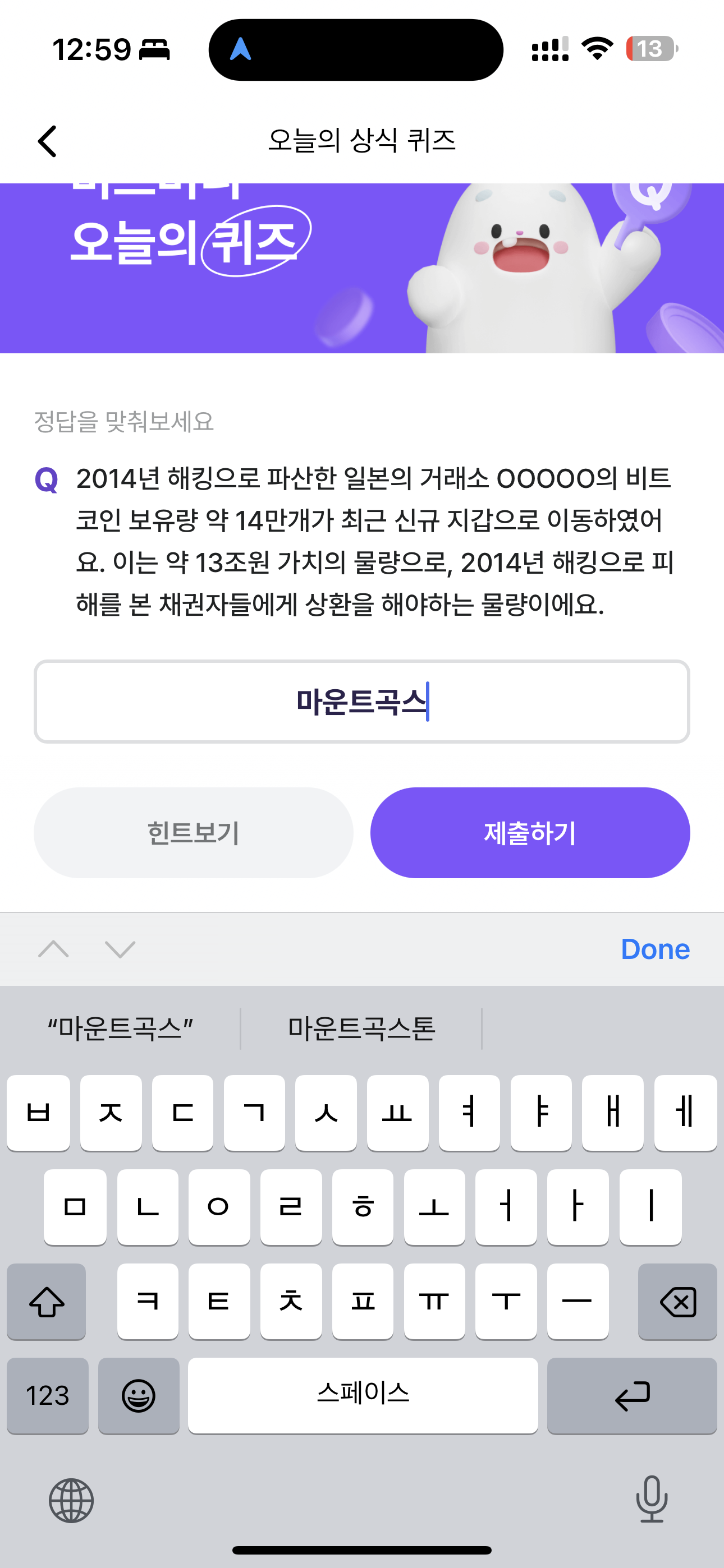 비트버니 오늘의 퀴즈 정답은 마운트곡스 입니다