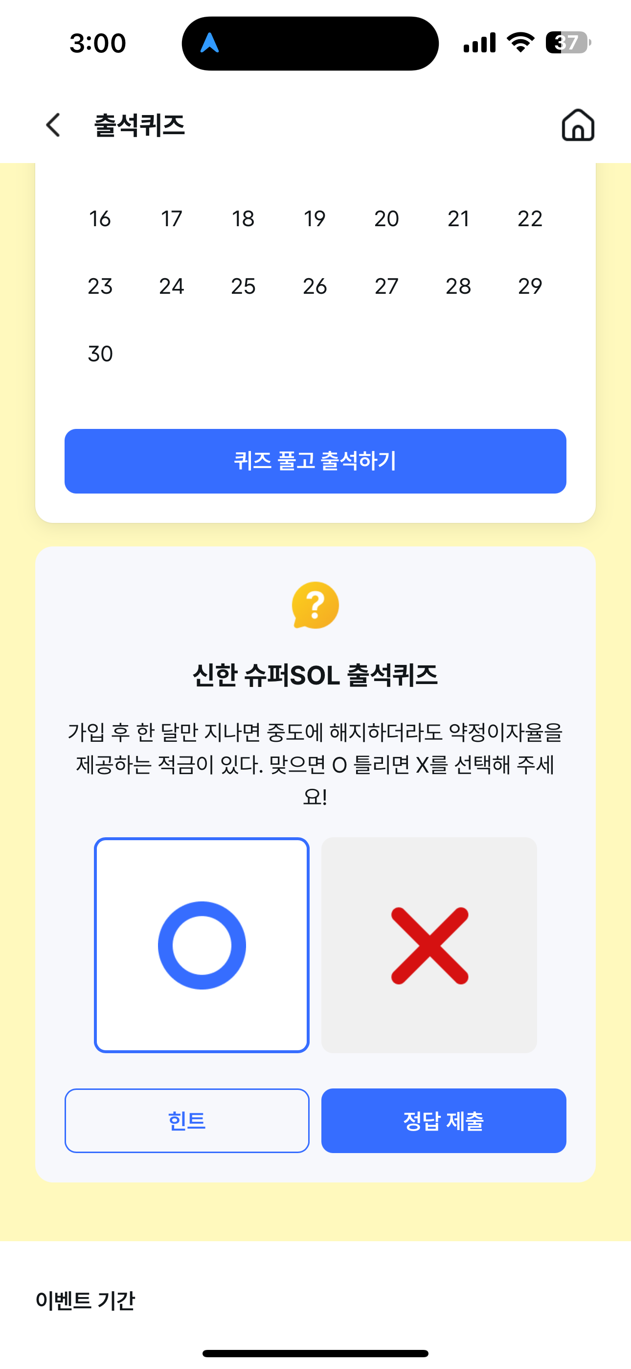 신한 슈퍼SOL 출석퀴즈 정답은 O 입니다