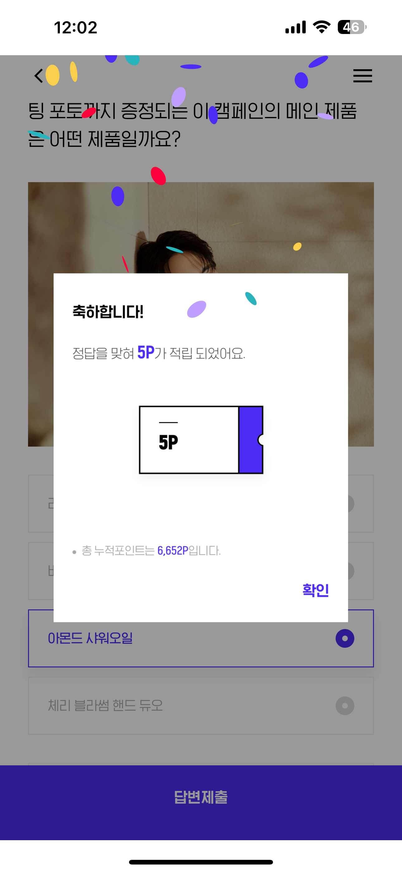 H포인트 퀴즈 정답은 아몬드 샤워오일 입니다