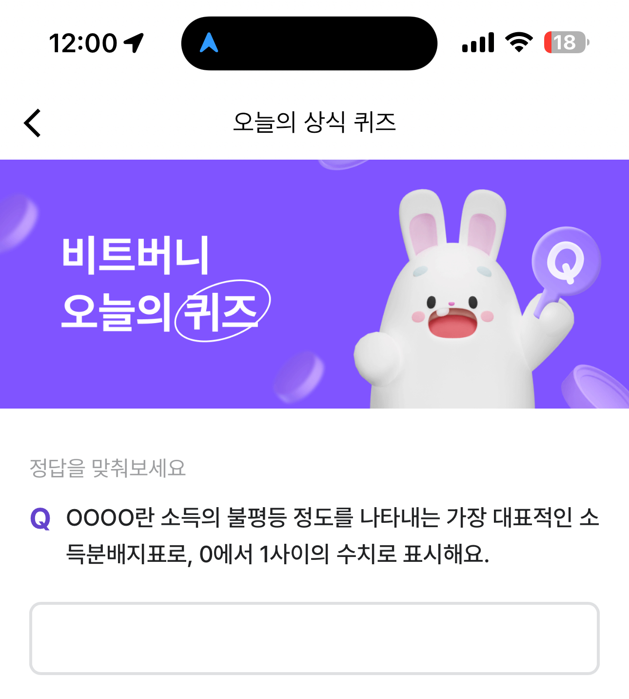 비트버니 오늘의 퀴즈 초성 힌트는 ㅈㄴㄱㅅ 입니다