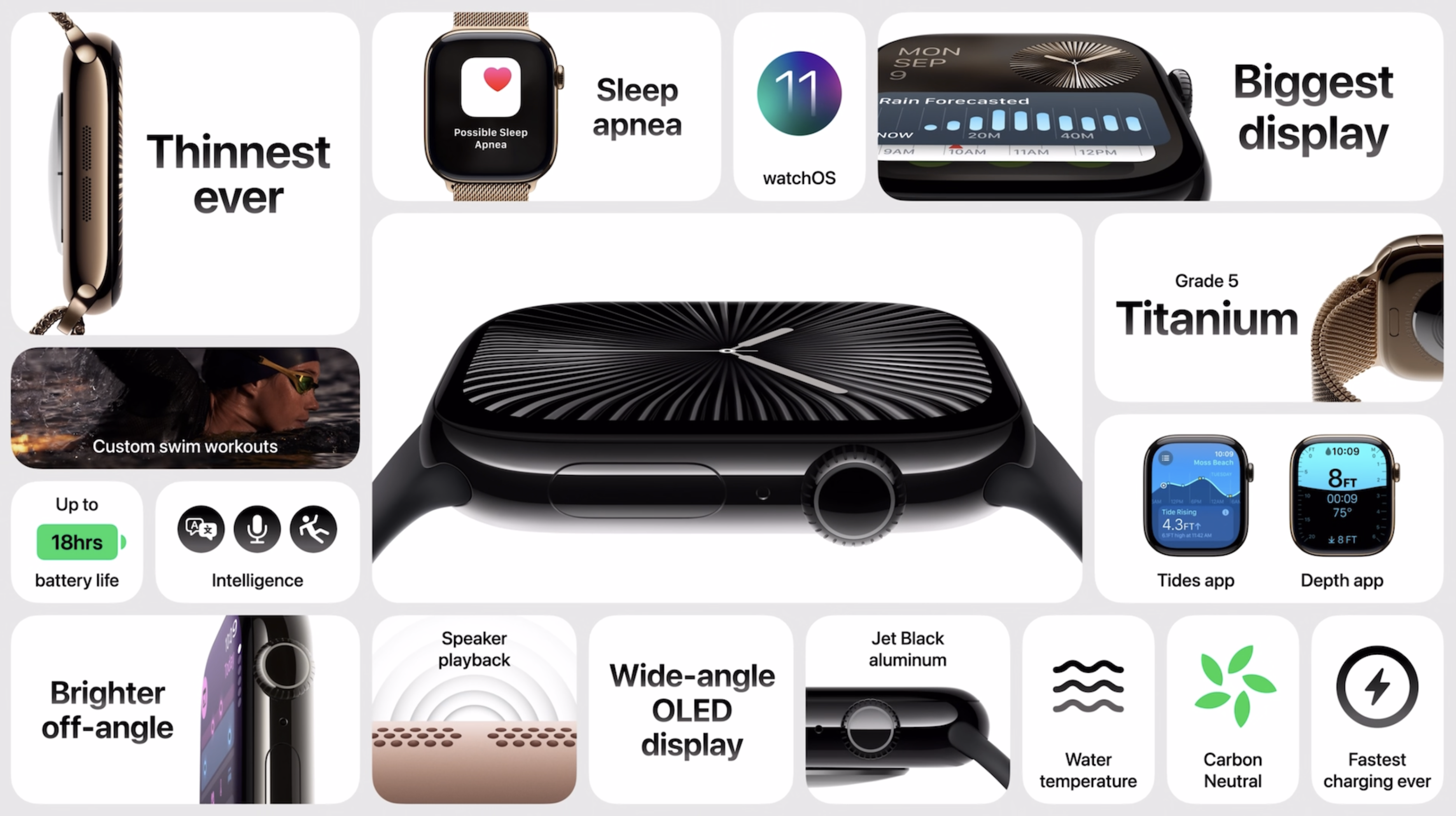 애플워치 10(애플워치 시리즈10)은 지금까지 나온 애플워치 중 가장 얇은 디자인을 가지고 있습니다.