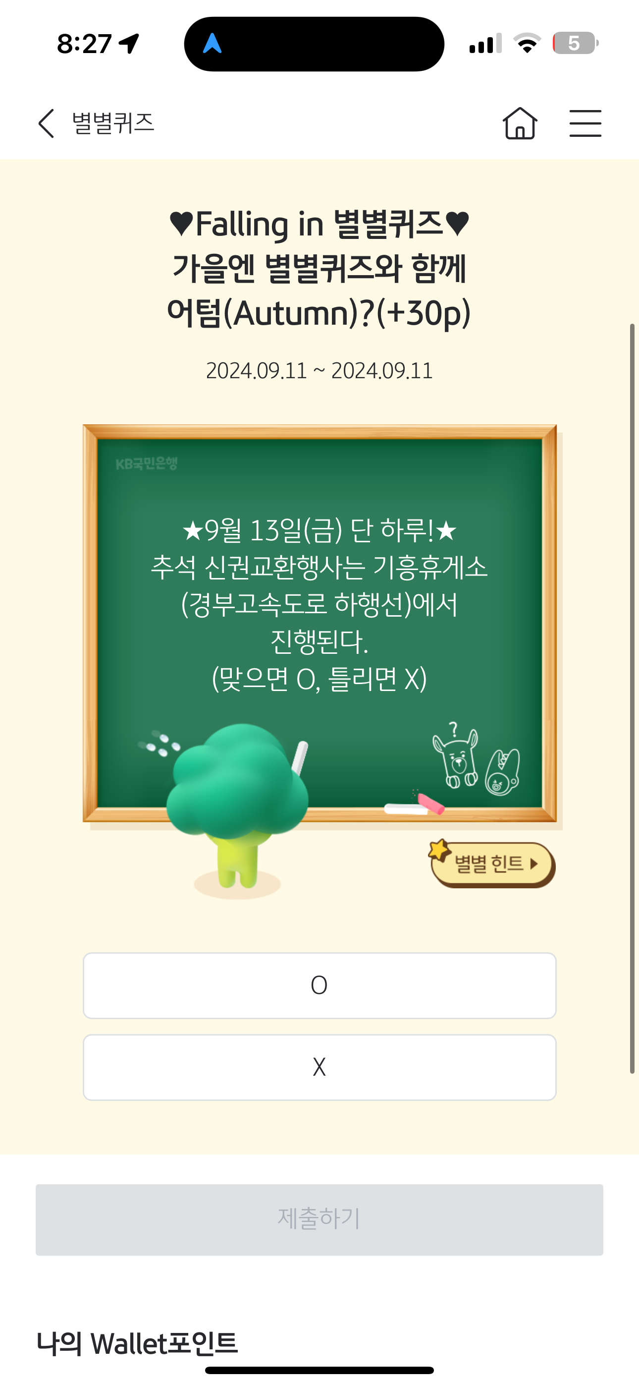 KB스타뱅킹 별별퀴즈 9월 11일 문제입니다