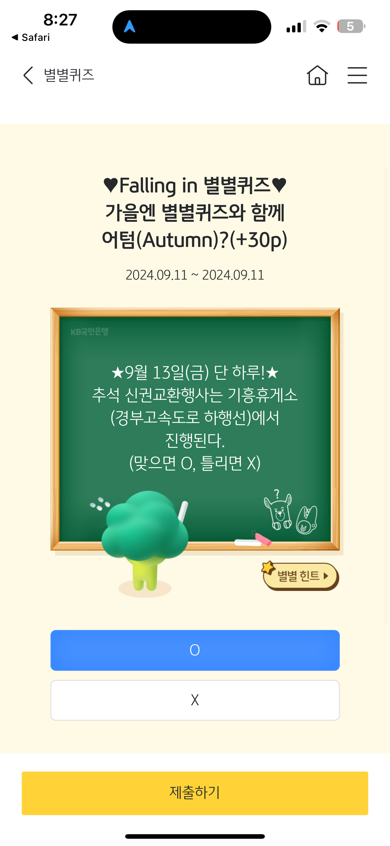KB스타뱅킹 별별퀴즈 정답은 O 입니다