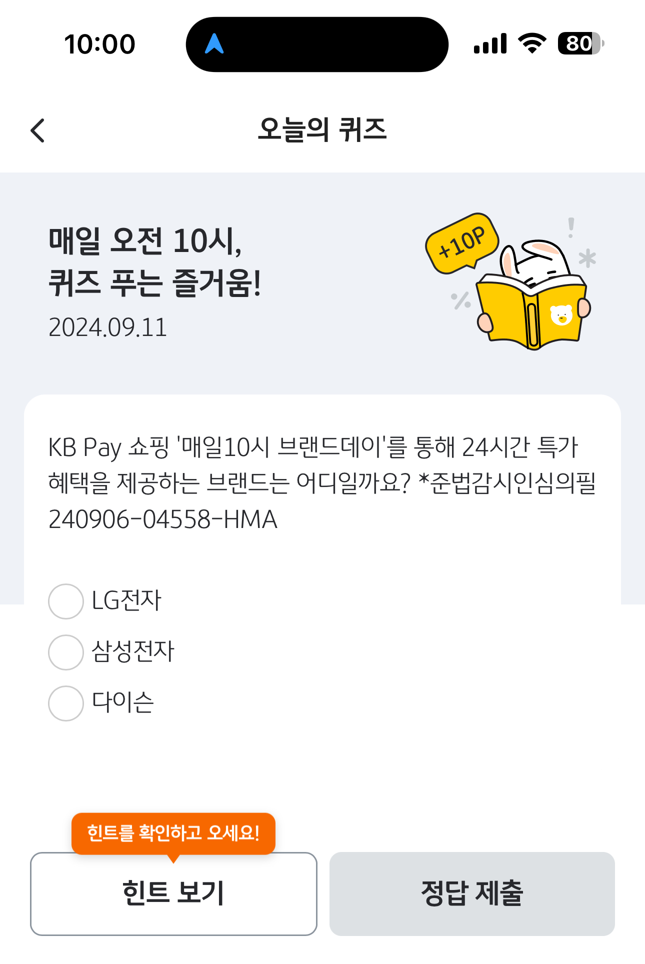 KB Pay 오늘의 퀴즈 9월 11일 문제입니다