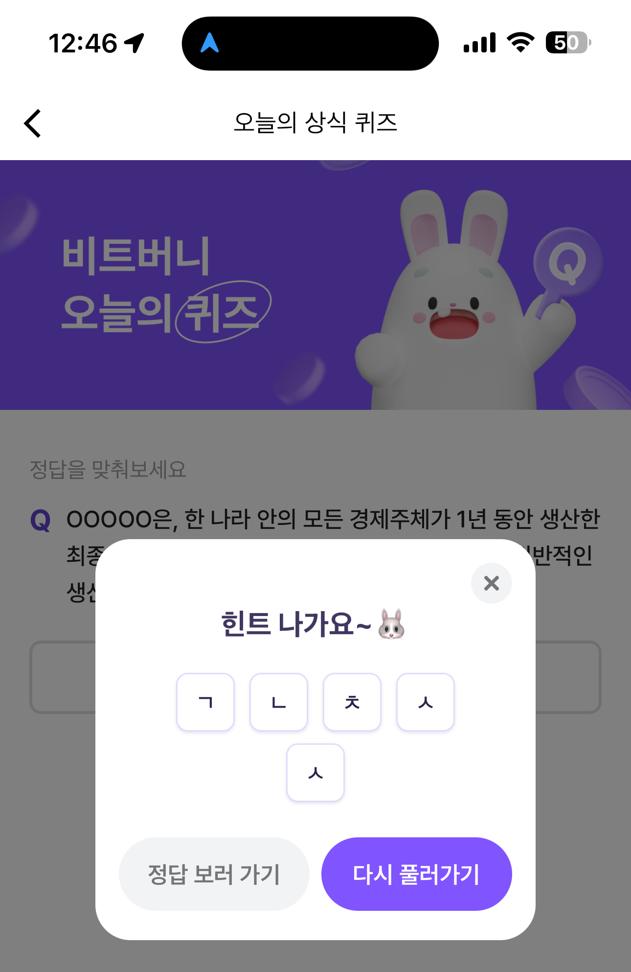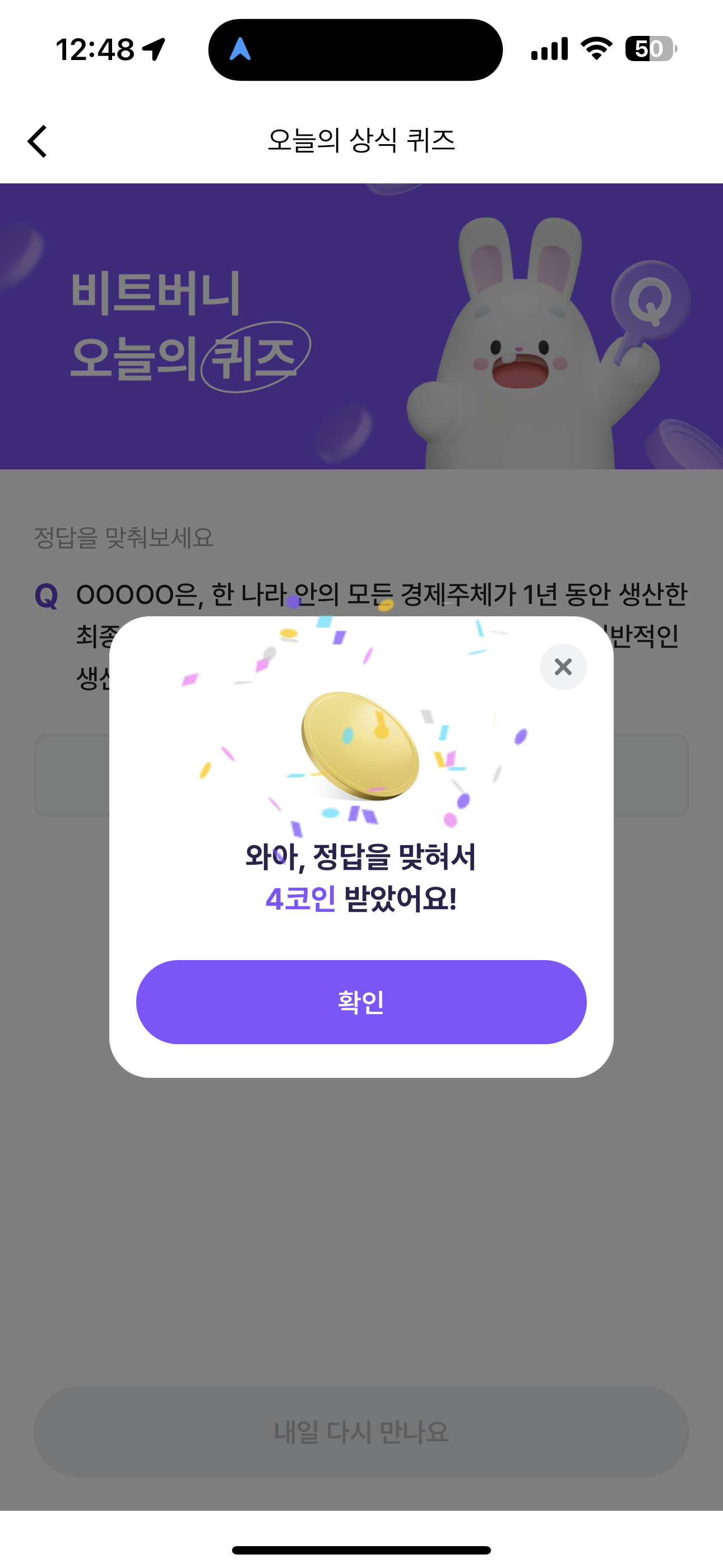 비트버니 오늘의 퀴즈 정답은 국내총생산 입니다