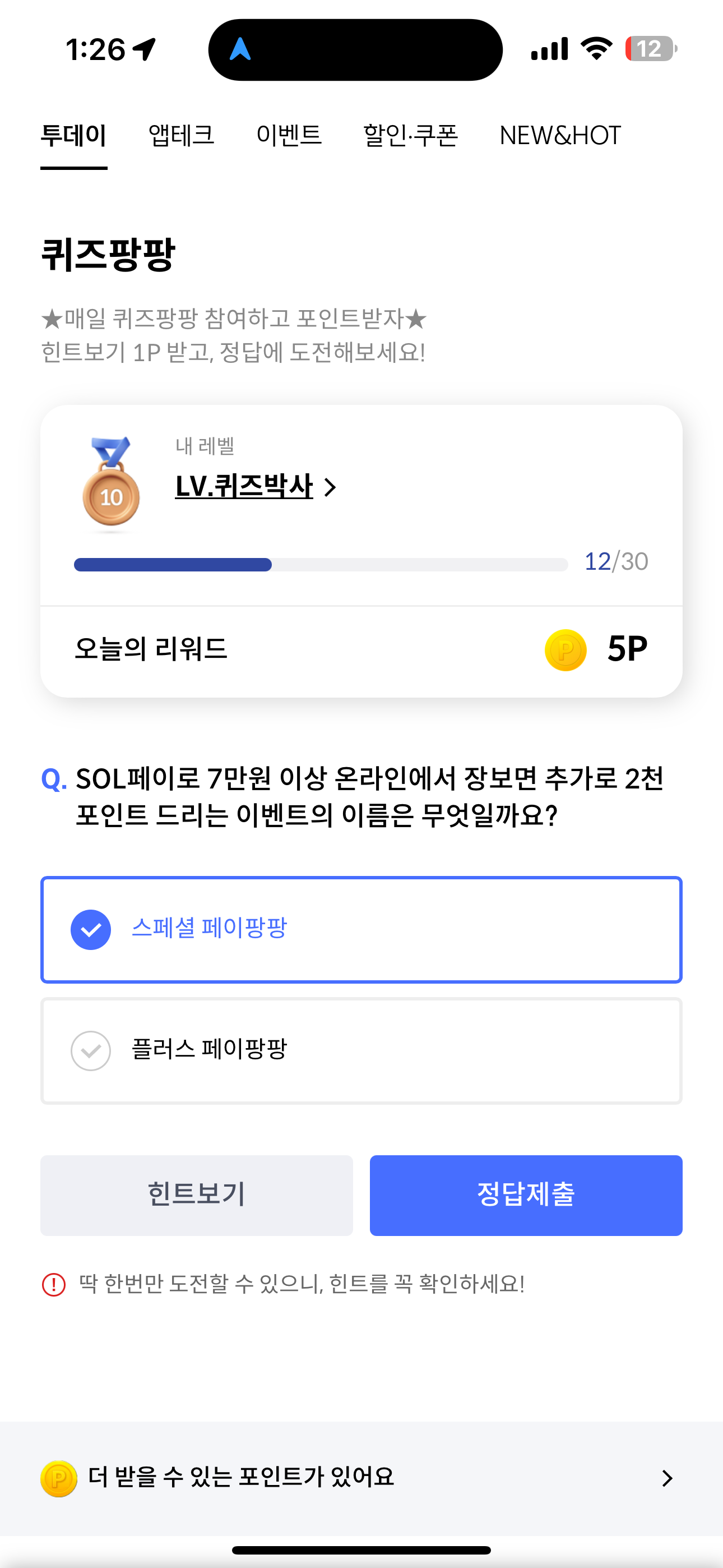 SOL페이로 7만원 이상 온라인에서 장보면 추가로 2천 포인트 드리는 이벤트의 이름은 무엇일까요? 보기는 1. 스페셜 페이팡팡 2. 플러스 페이팡팡 입니다. SOL페이로 7만원 이상 장보면 추가 포인트를 받을 수 있으니 참고해서 활용해 보세요