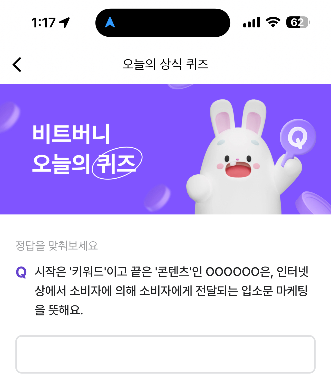 비트버니 오늘의 퀴즈 초성 힌트는 ㅂㅇㄹㅁㅋㅌ 입니다