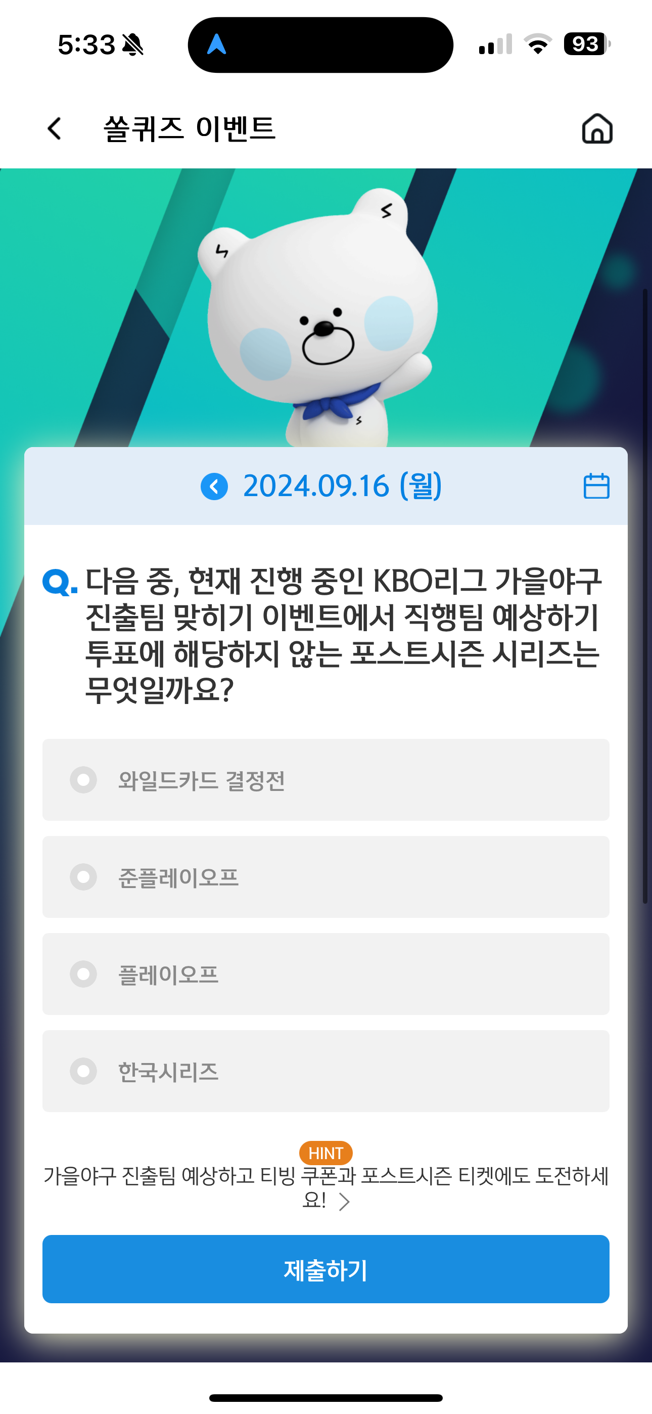 신한 슈퍼SOL 야구/상식 쏠퀴즈 정답은 와일드카드 결정전 입니다