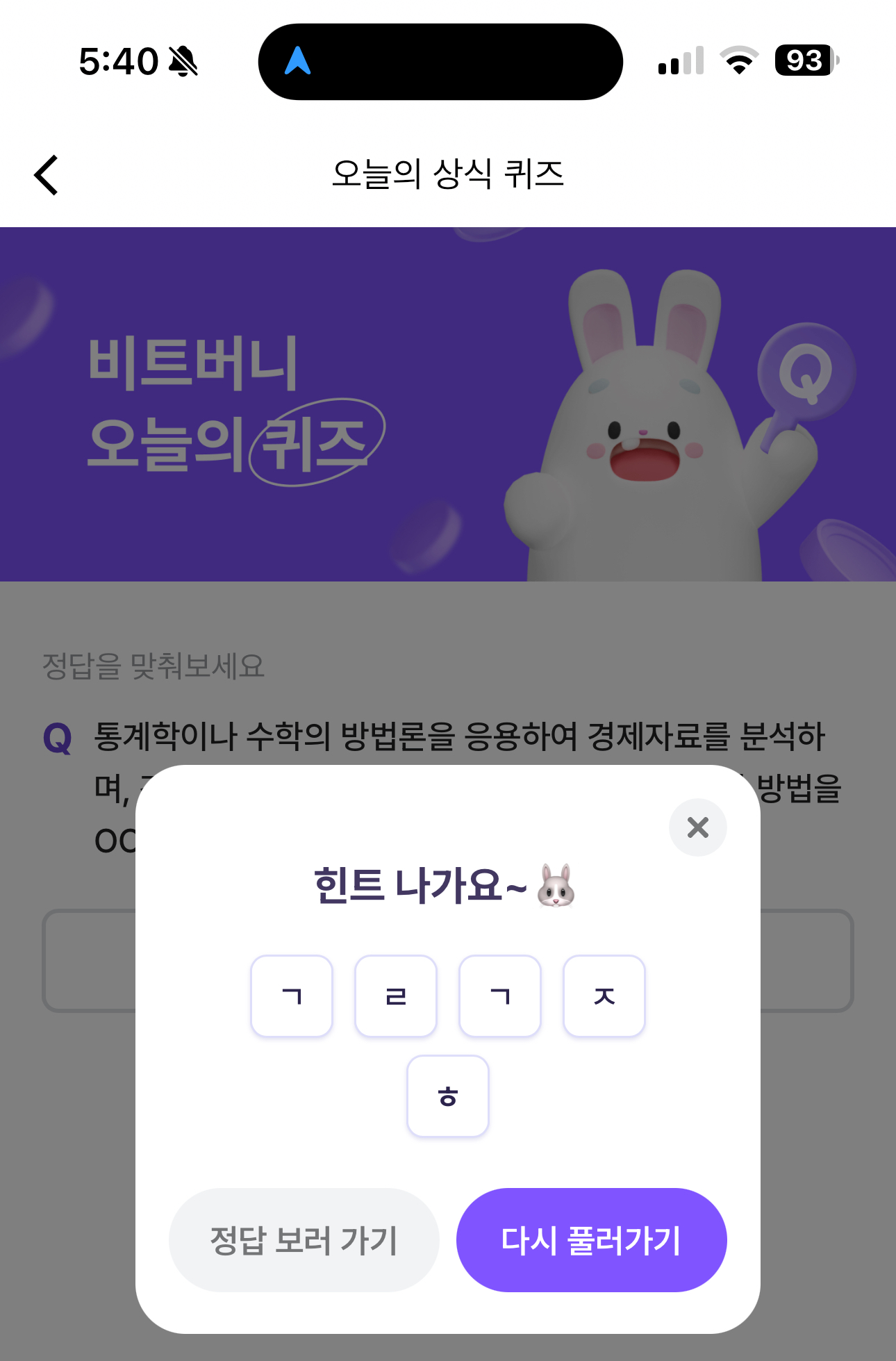 비트버니 오늘의 퀴즈 9월 16일 ㄱㄹㄱㅈㅎ 정답(통계학이나 수학의 방법론을 응용하여 경제자료를 분석하며, 경제이론을 실증으로 검정하거나 논박하기 위한 방법을 )