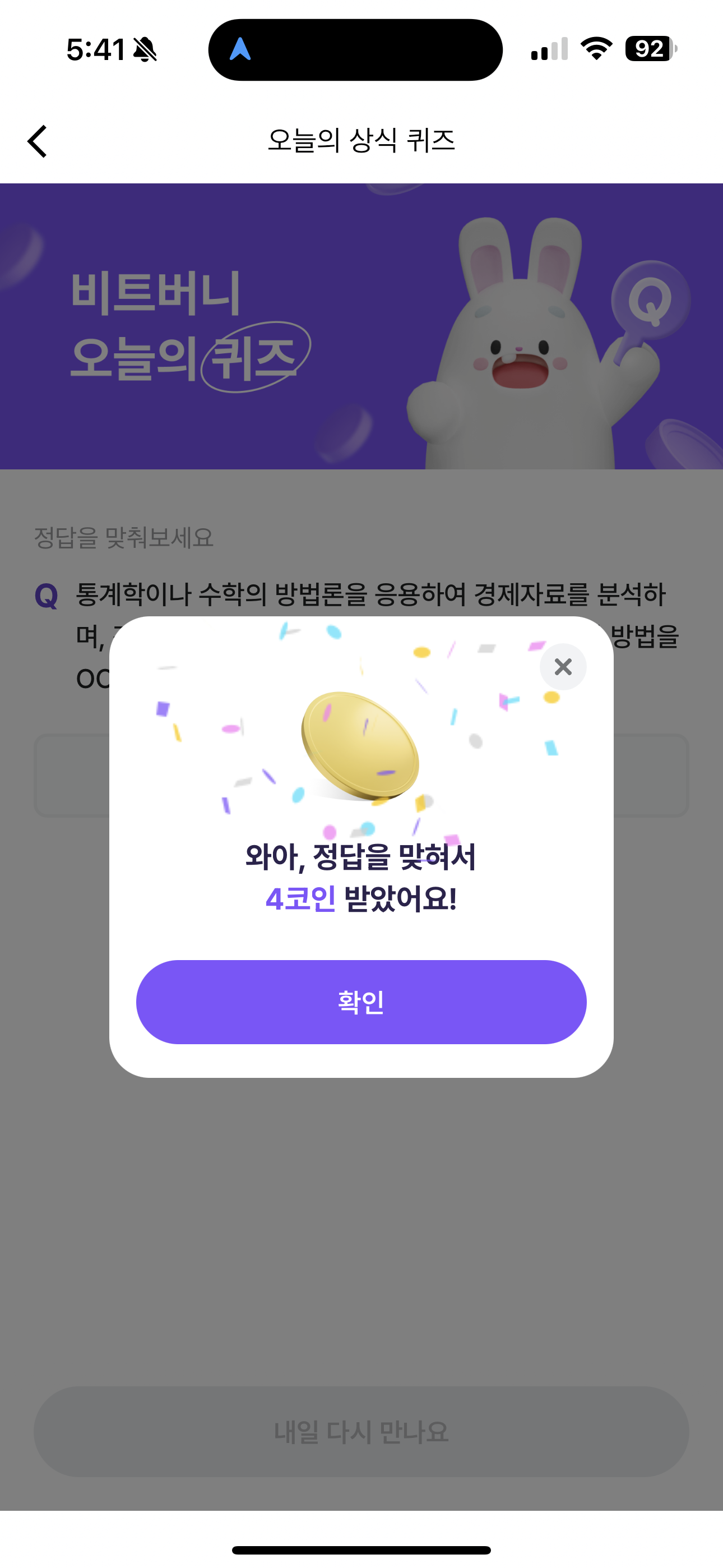 비트버니 오늘의 퀴즈 정답은 계량경제학 입니다