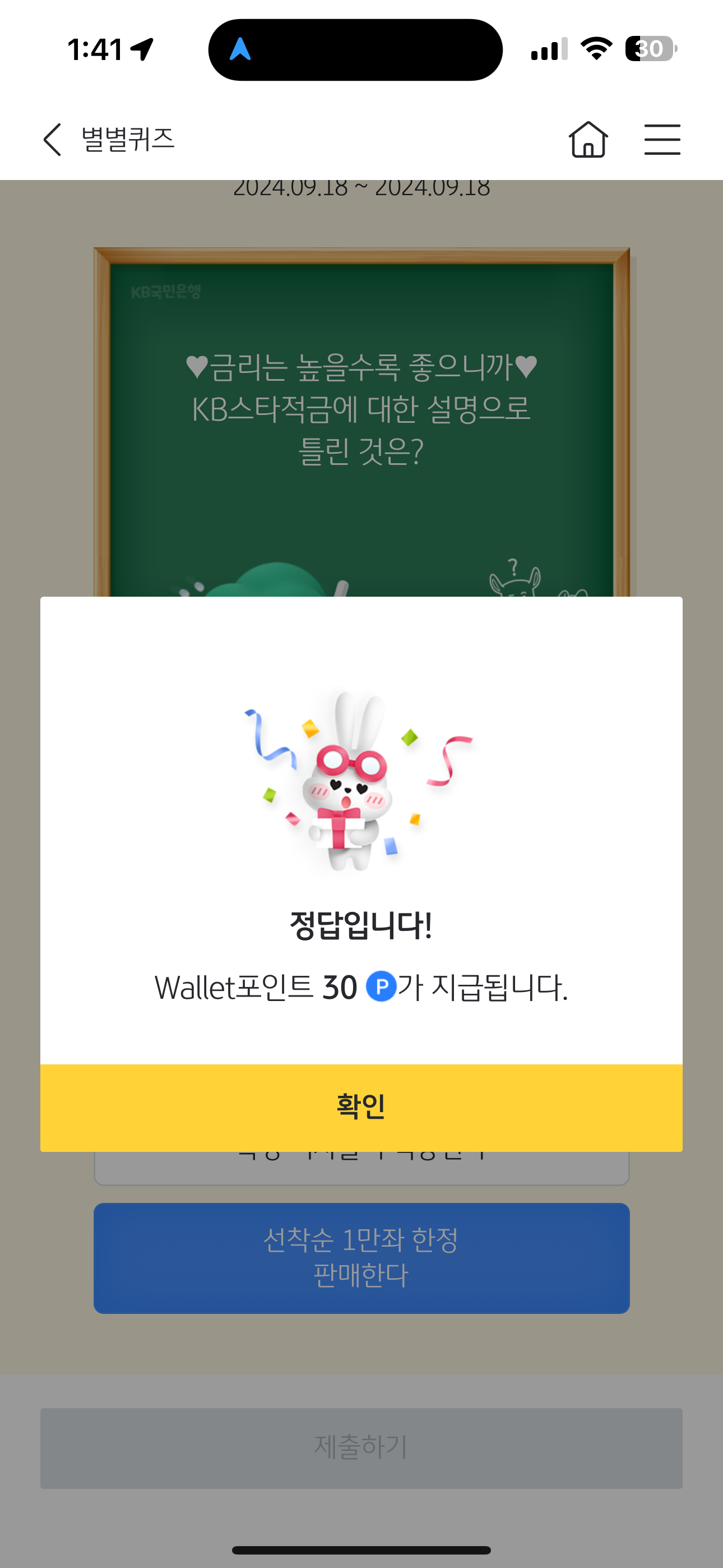 KB스타뱅킹 별별퀴즈 정답은 선착순 1만좌 한정 판매한다 입니다