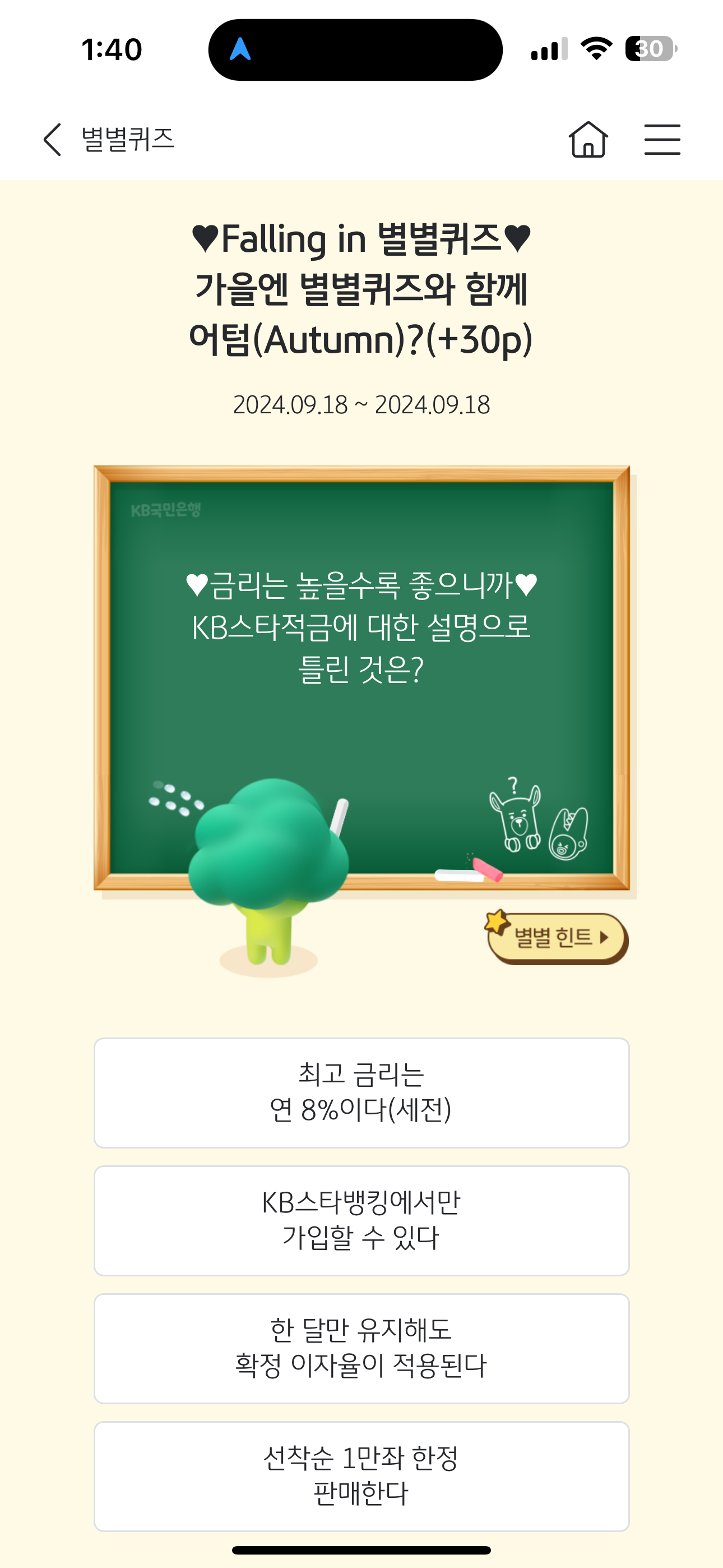 KB스타뱅킹 별별퀴즈 9월 18일 문제입니다