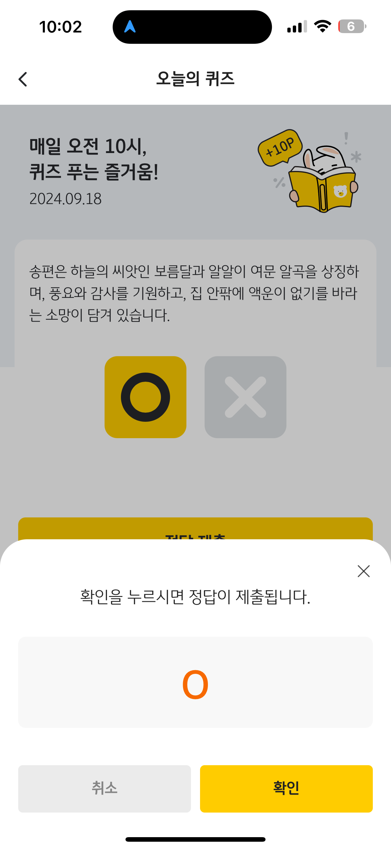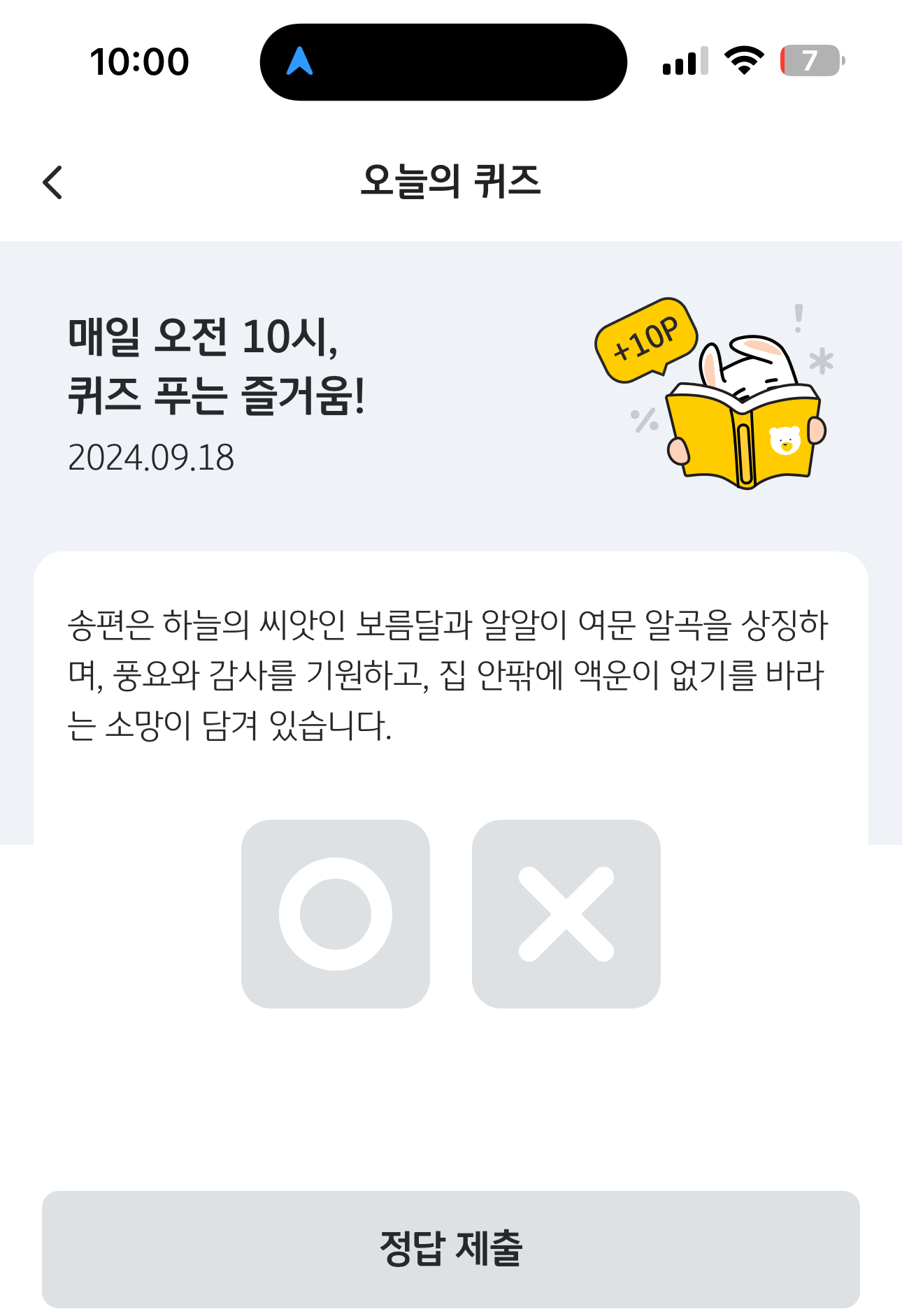 KB Pay 오늘의 퀴즈 정답은 O 입니다