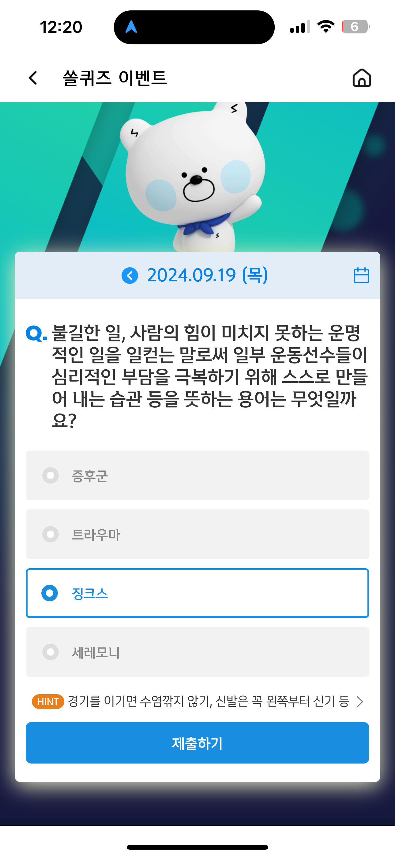 신한 슈퍼SOL 야구/상식 쏠퀴즈 정답은 징크스 입니다