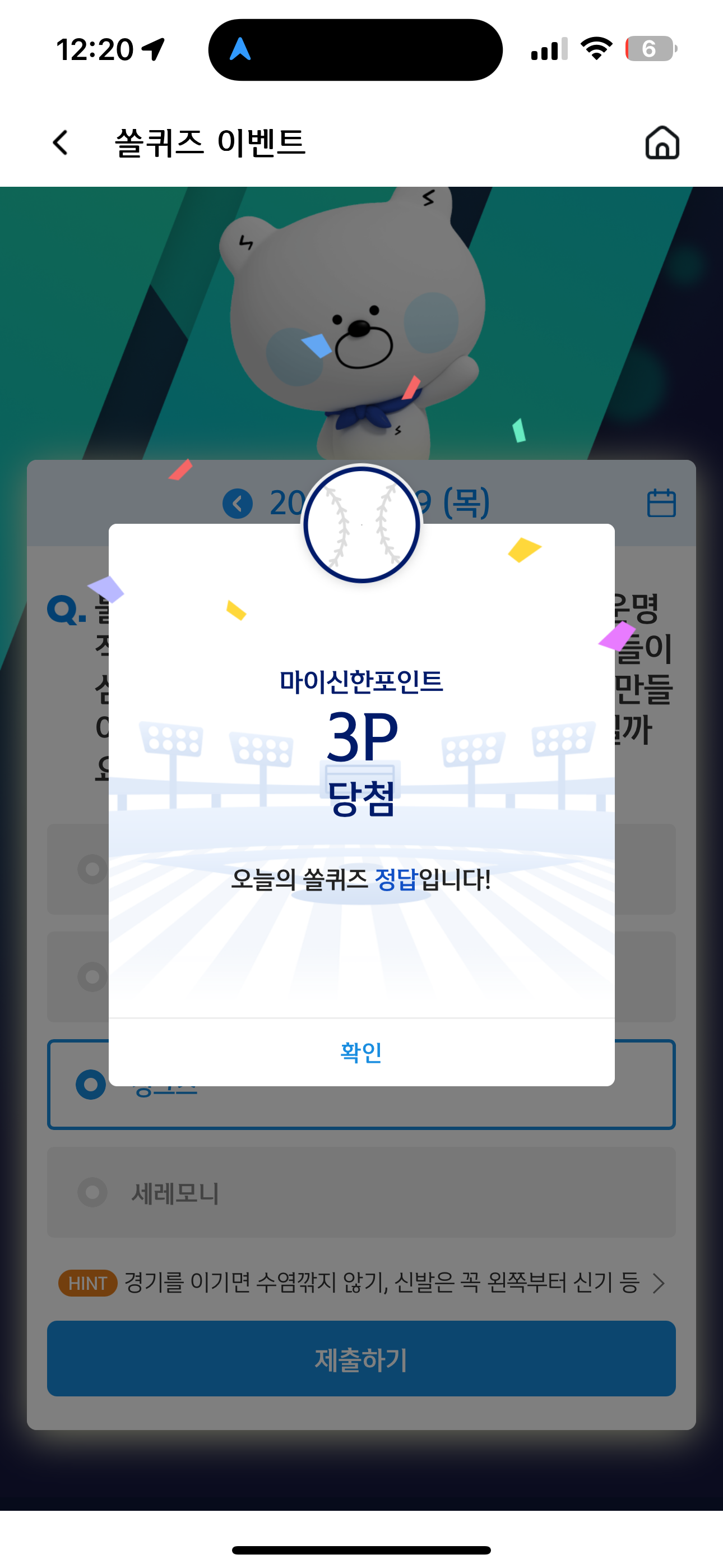 신한 슈퍼SOL 야구/상식 쏠퀴즈 9월 19일 문제입니다