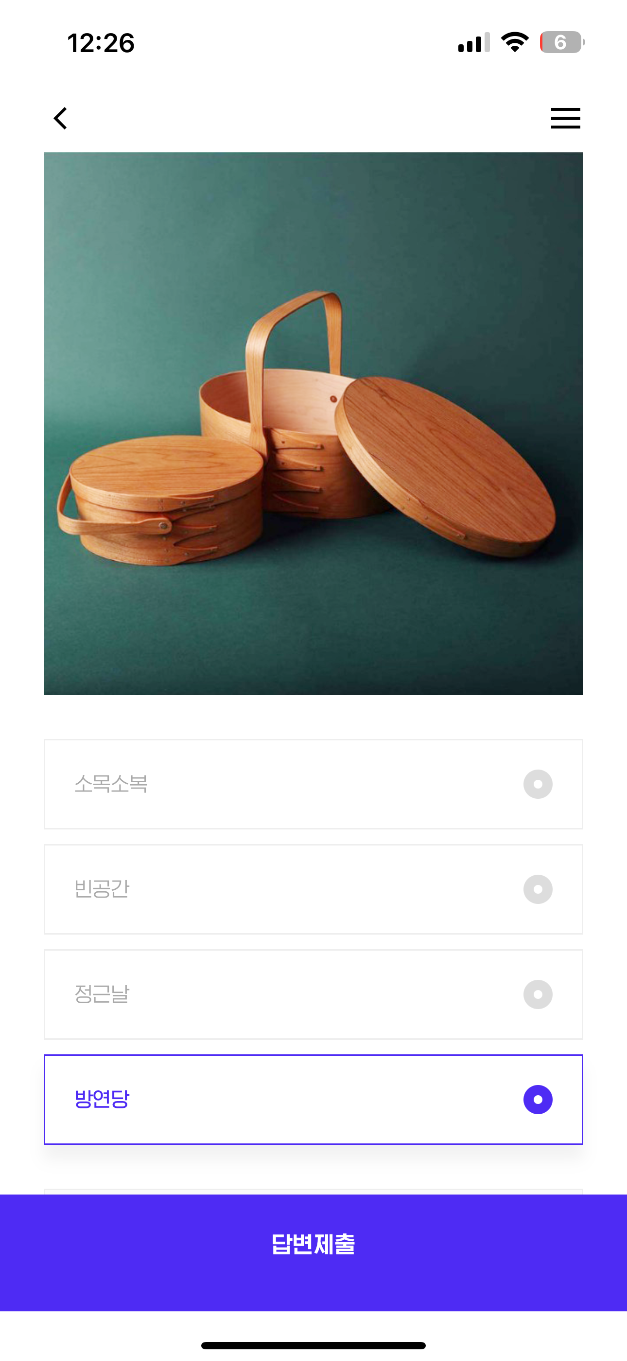 리바트 공방에서는 국내의 특색 있고 다양한 공방들을 소개하고 있는데요! 그 중 미국의 전통 공예품인  ' 셰이커 박스 ' 를 현대적인 감성으로 재해석한 작품으로 인기를 끌고 있는 이 공방의 이름은 무엇일까요? 보기는 1. 소목소복 2. 빈공간 3. 정근날 4. 방연당 입니다.