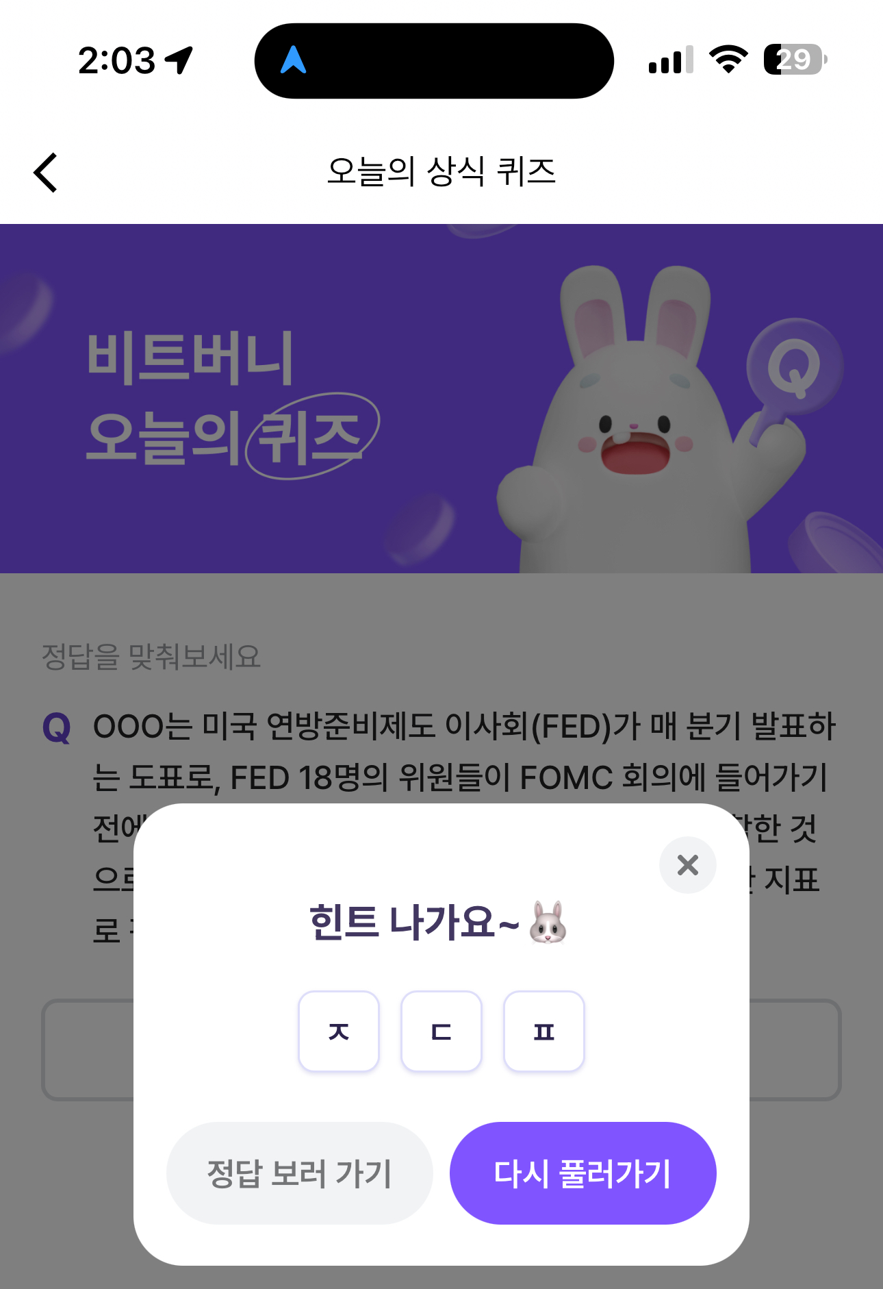 비트버니 오늘의 퀴즈 초성 힌트는 ㅈㄷㅍ 입니다