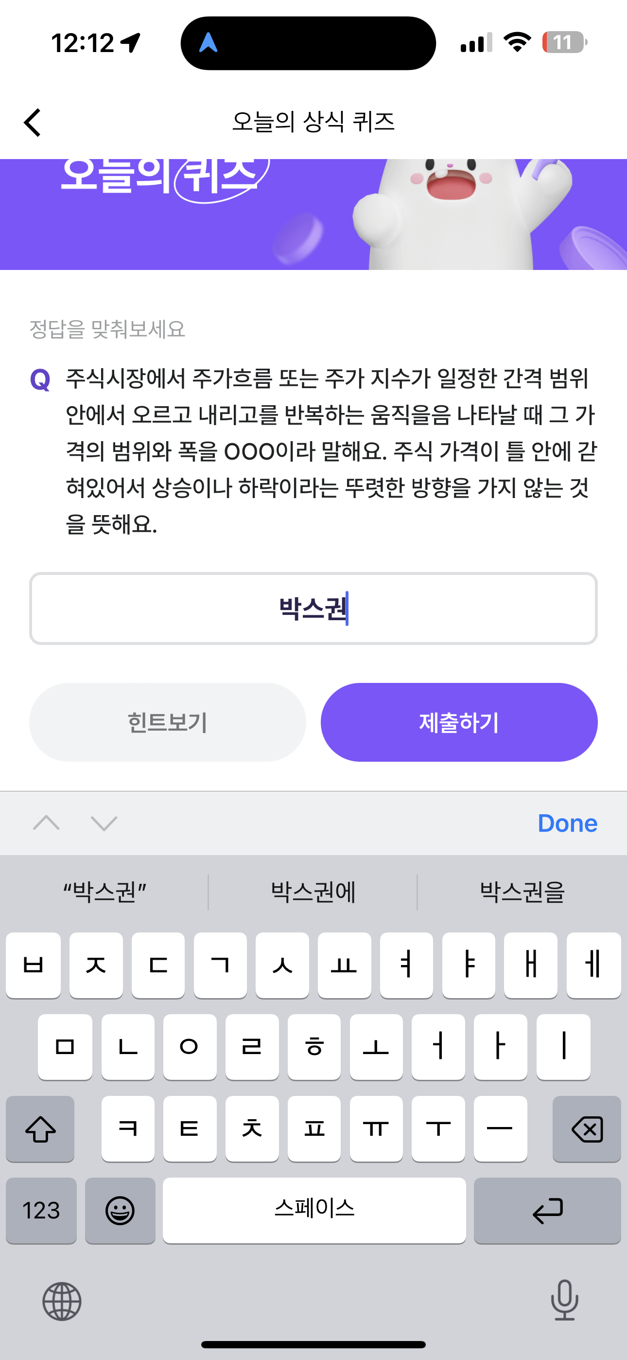 비트버니 오늘의 퀴즈 정답은 박스권 입니다