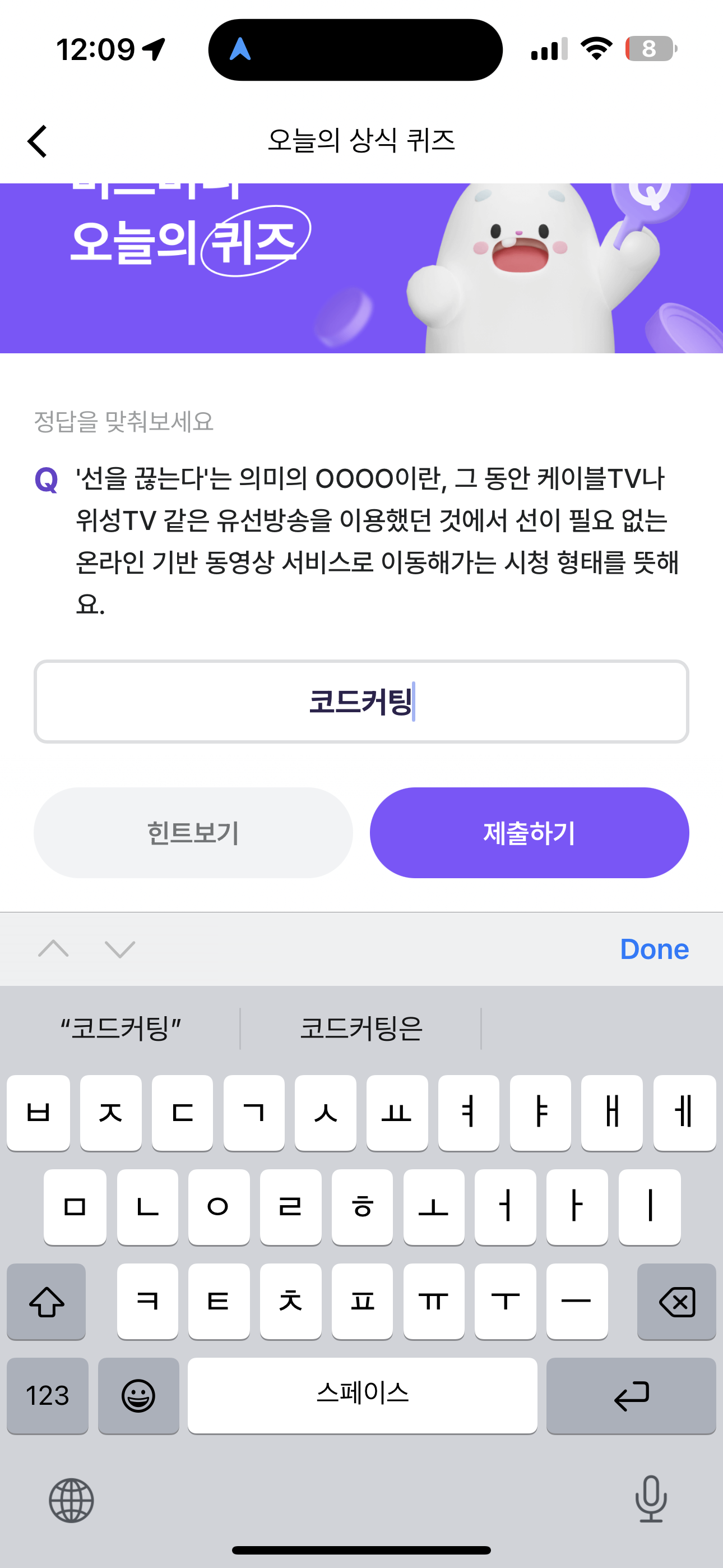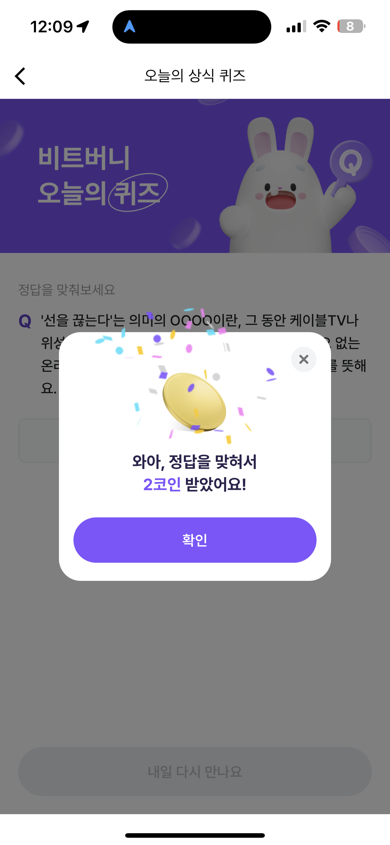 비트버니 오늘의 퀴즈 정답은 코드커팅 입니다