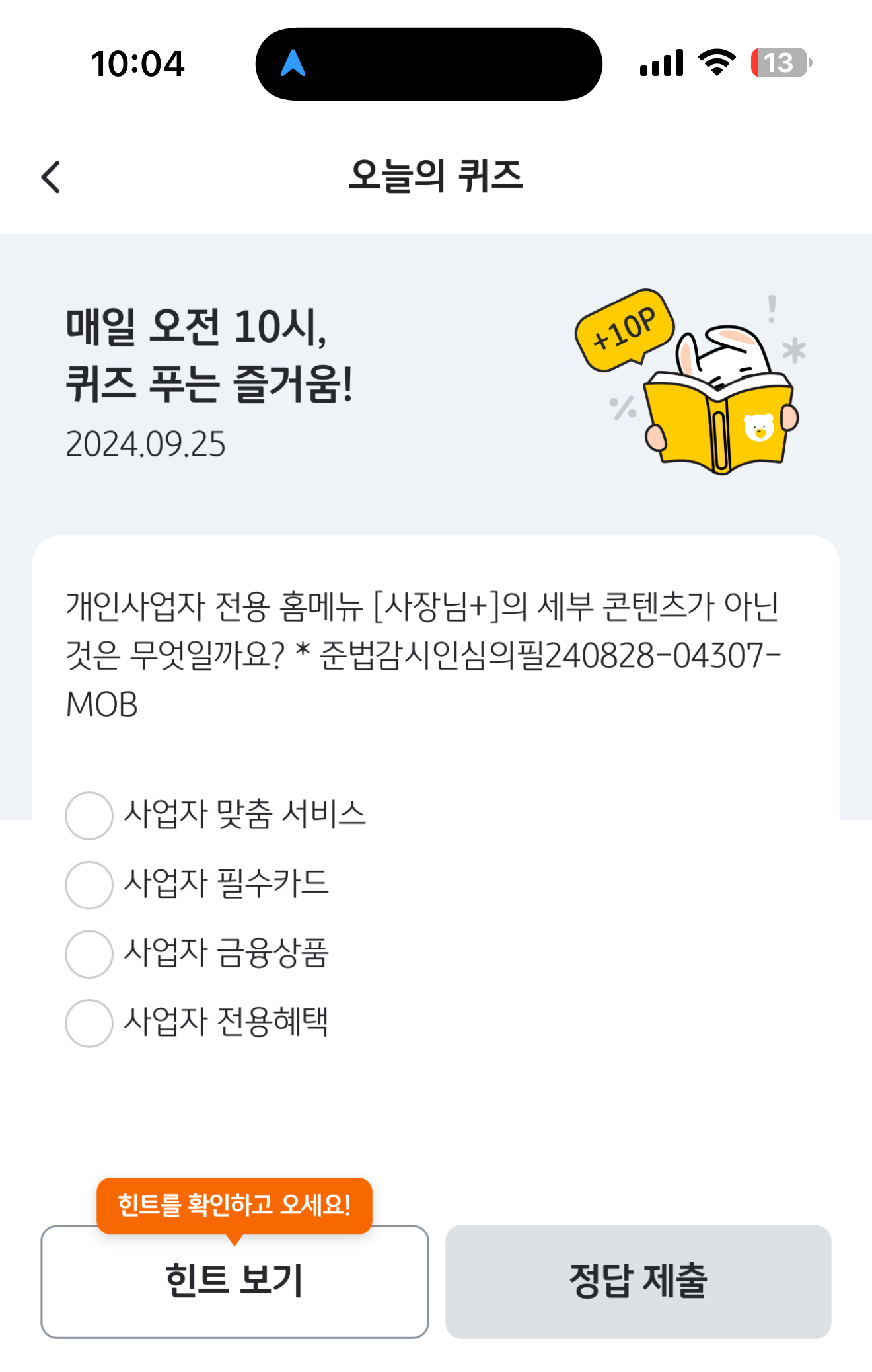 KB Pay 오늘의 퀴즈 정답은 사업자 전용혜택 입니다
