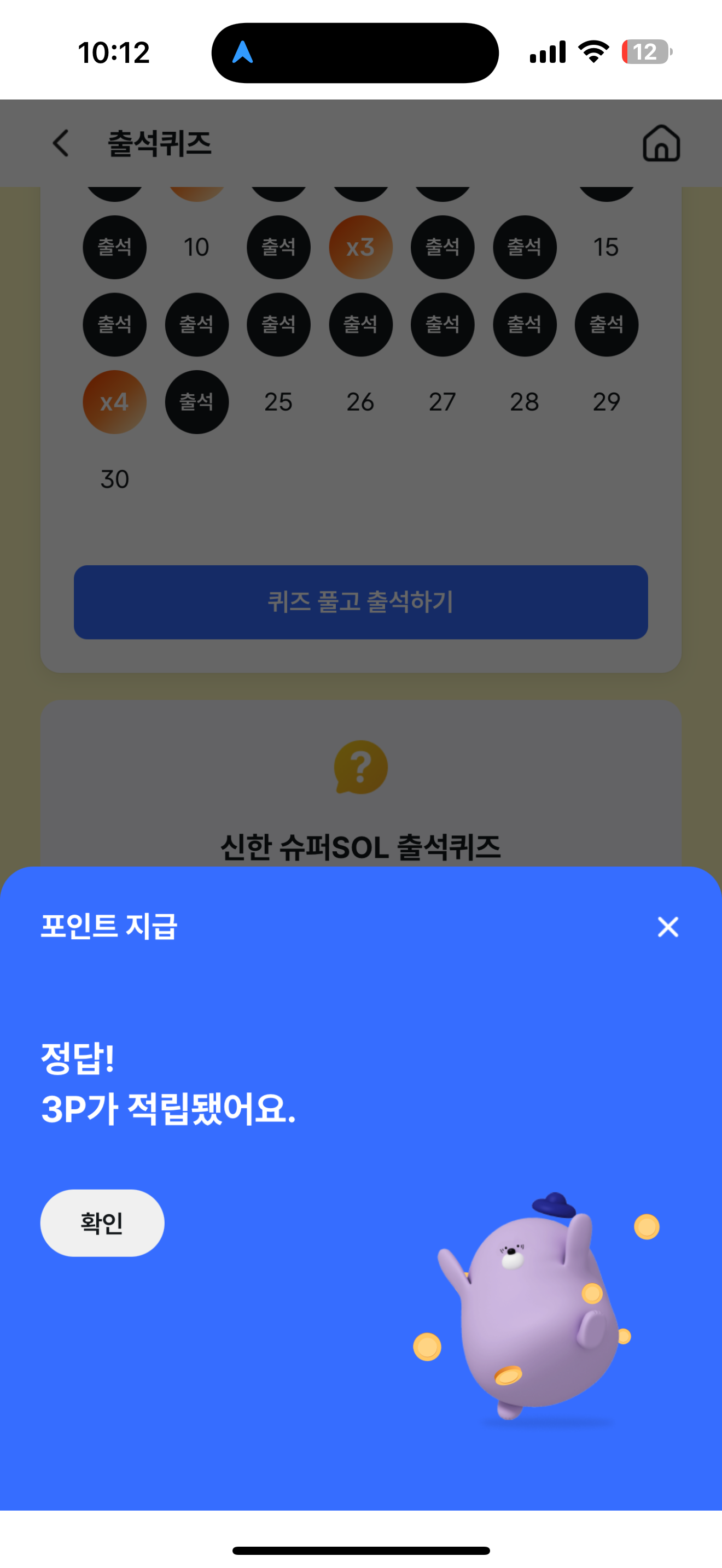 신한 슈퍼SOL 출석퀴즈 정답은 X 입니다