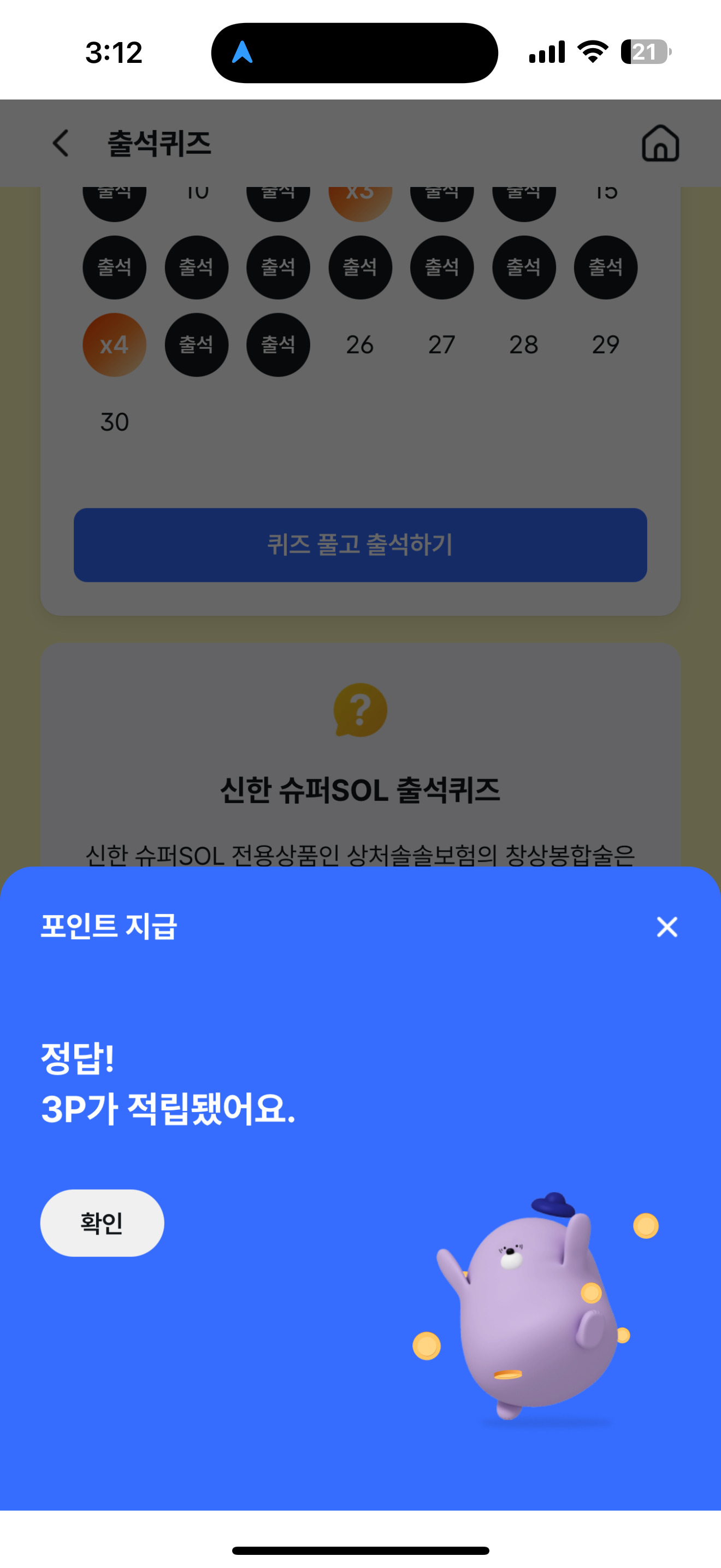 3P를 받았습니다. 포인트는 현금 전환 가능하니 꼭 받으시고요. 여러분의 재테크를 응원합니다