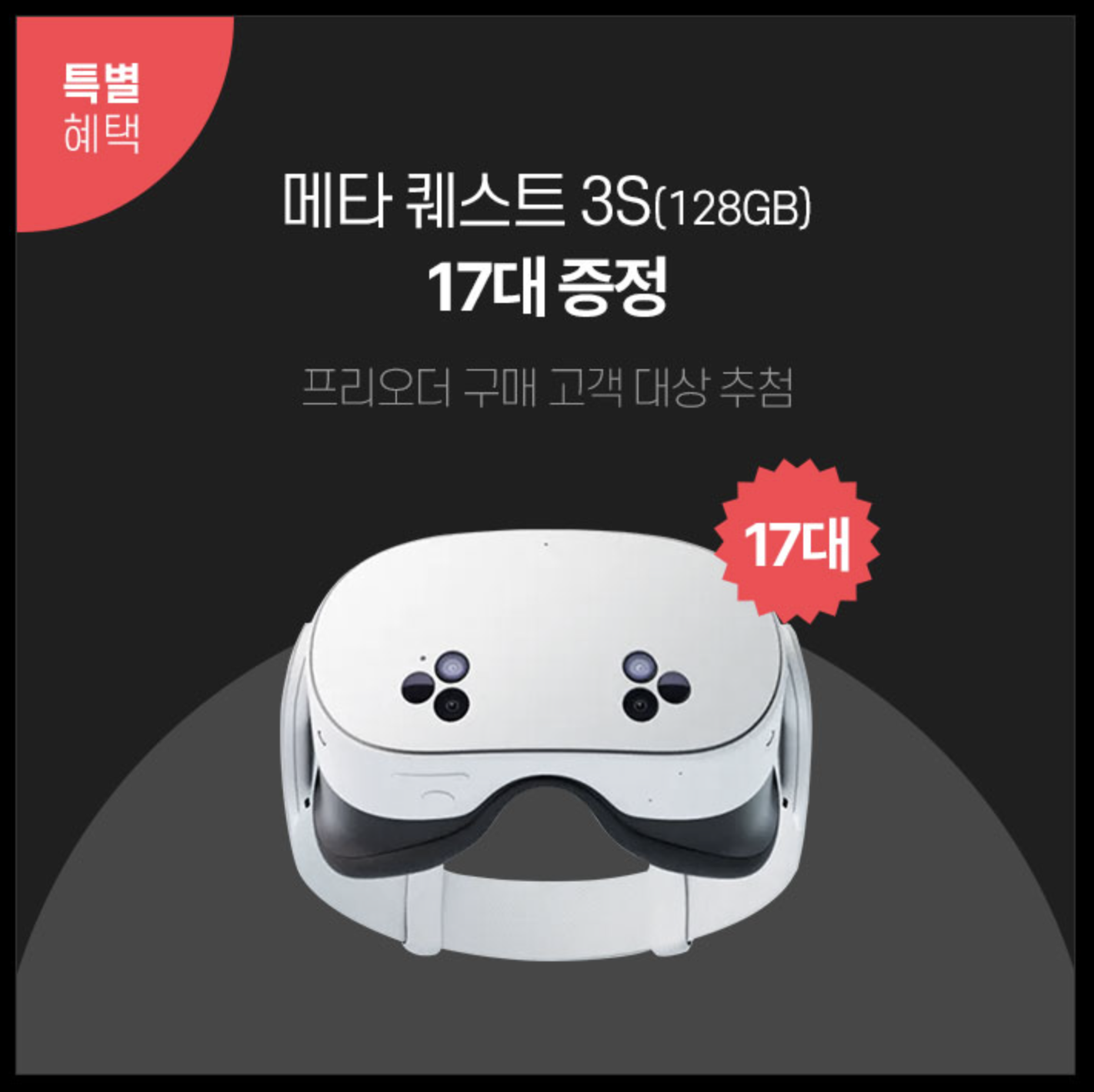 메타퀘스트3S 사전예약 구매자 중 17명을 선정해 메타퀘스트3S 128GB 모델을 제공합니다. 하나 더 받을 수 있으니 참고해 두세요