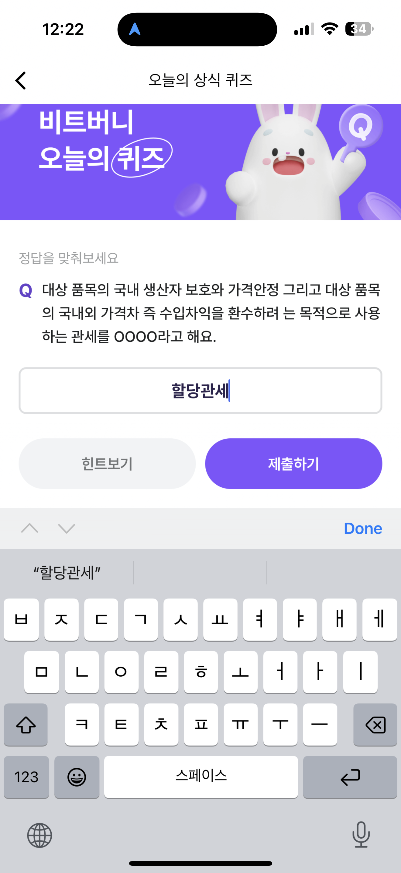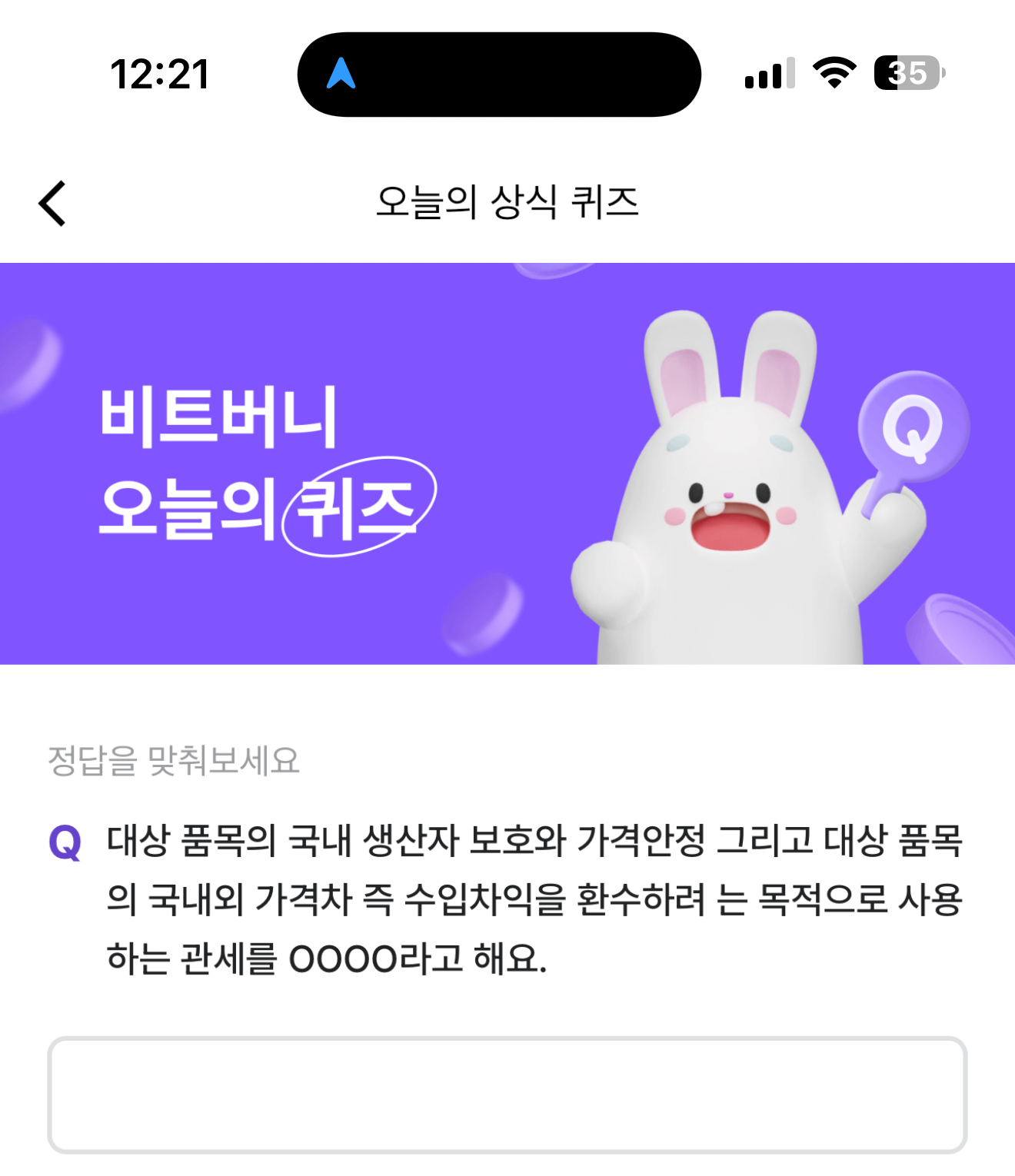 비트버니 오늘의 퀴즈 정답은 할당관세 입니다