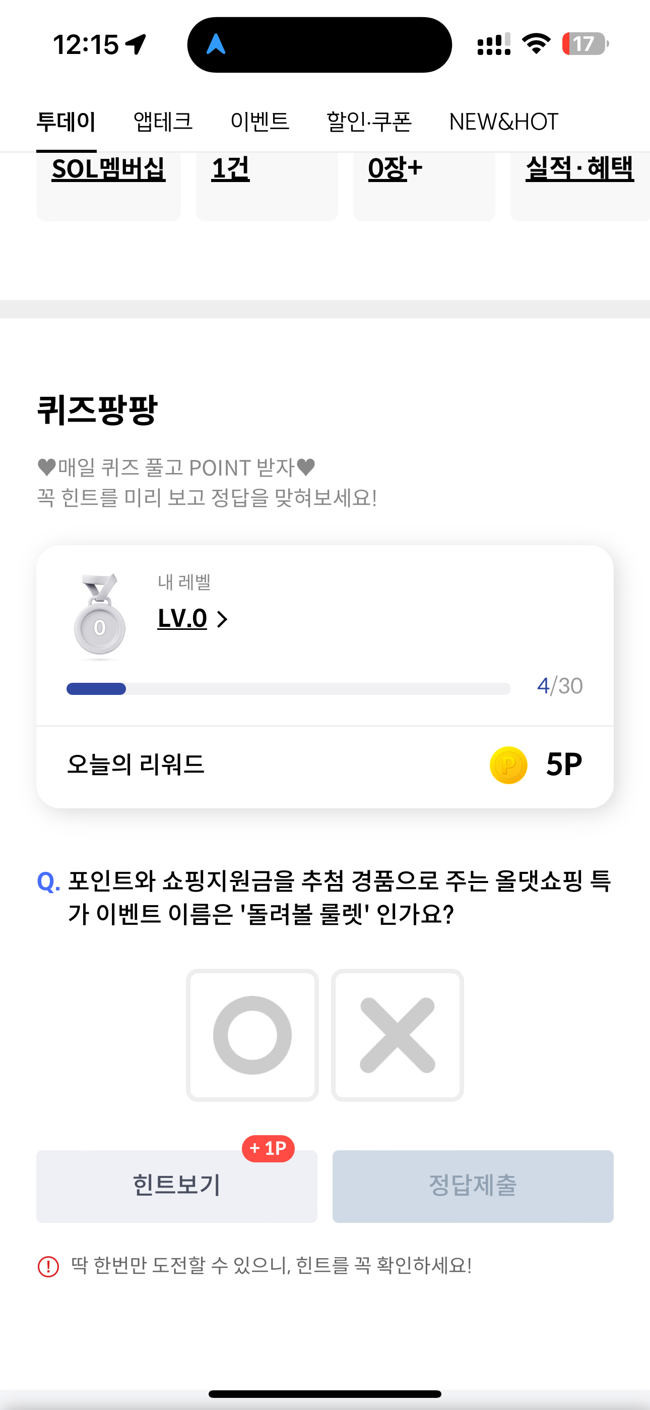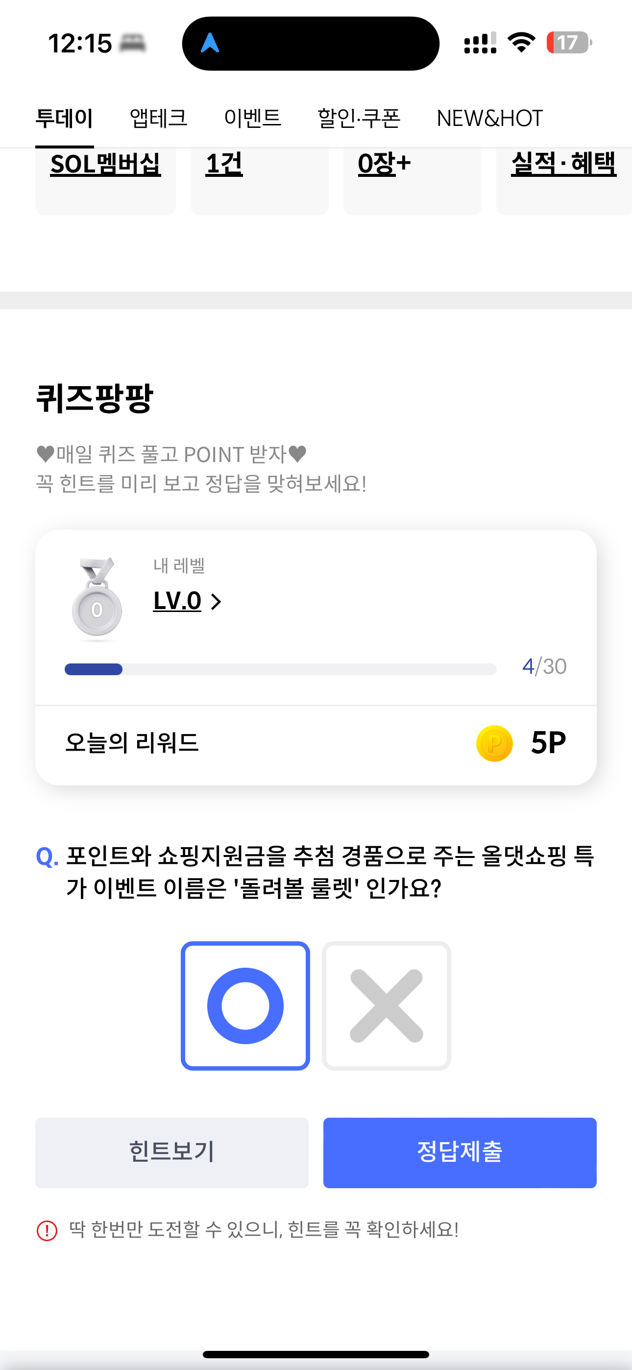 포인트와 쇼핑지원금을 추첨 경품으로 주는 올댓쇼핑 특가 이벤트 이름은 '돌려볼 룰렛' 인가요? O, X 퀴즈인데요. 포인트와 쇼핑지원금을 다양하게 경품으로 주는 이벤트가 열리고 있습니다. 이런 이벤트는 참여하고 봐야죠. 쇼핑지원금 받고 알뜰 쇼핑 해보세요