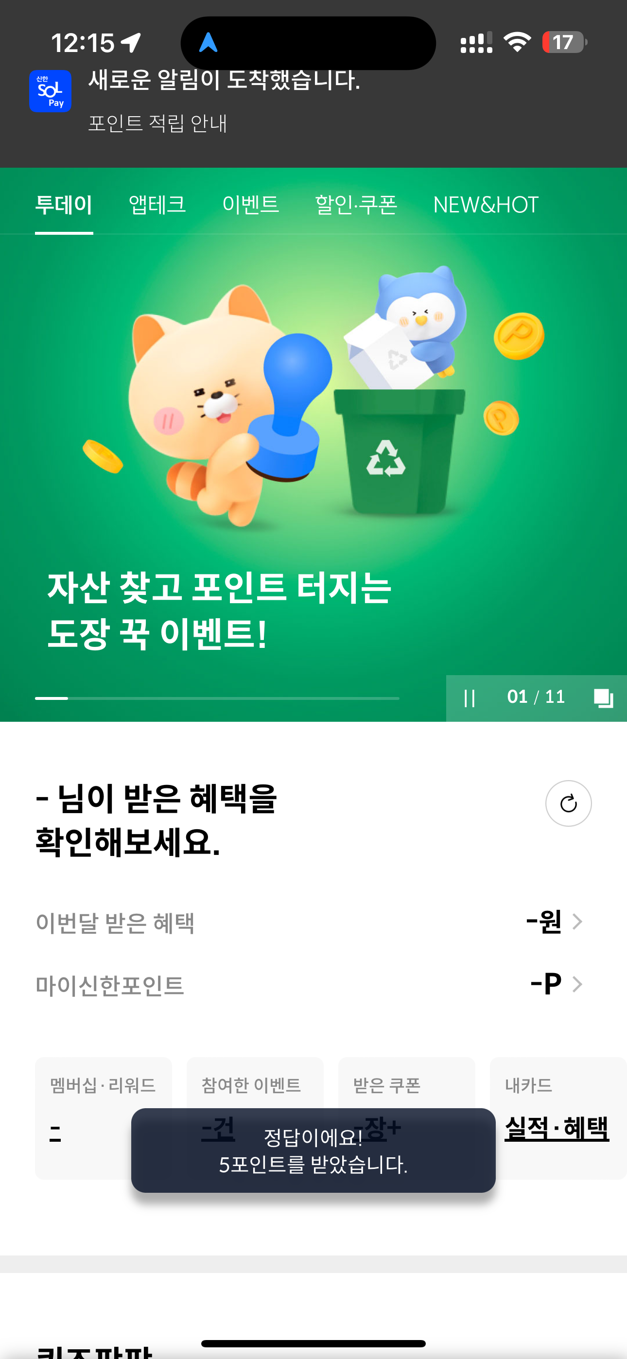 5포인트를 받았습니다. 포인트는 현금 전환 가능하니 꼭 받으시고요. 여러분의 재테크를 응원합니다