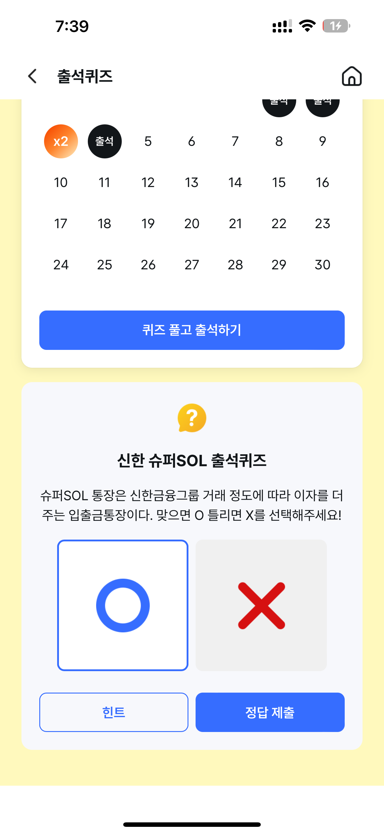신한 슈퍼SOL 출석퀴즈 정답은 O 입니다