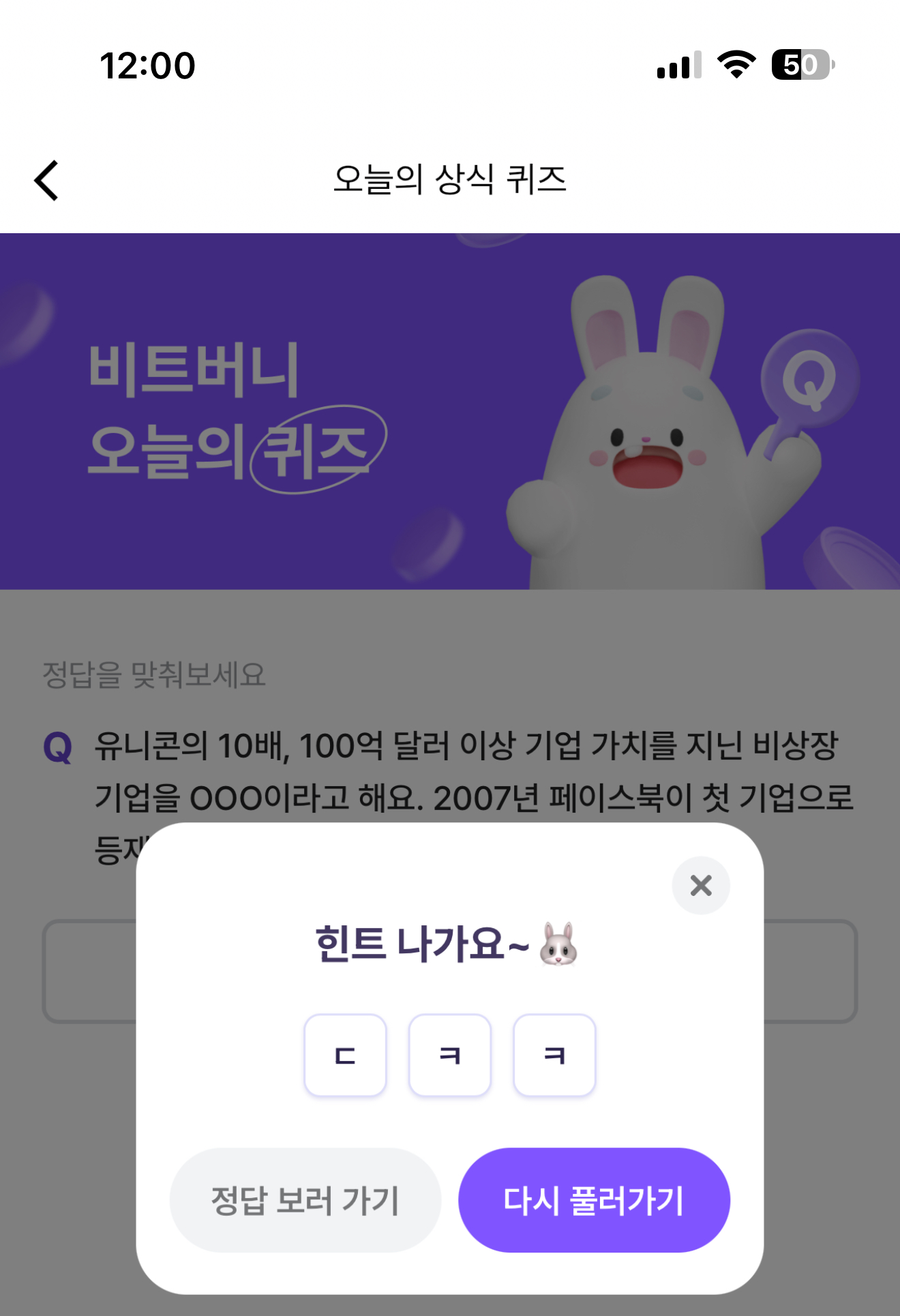 비트버니 오늘의 퀴즈 초성 힌트는 ㄷㅋㅋ 입니다