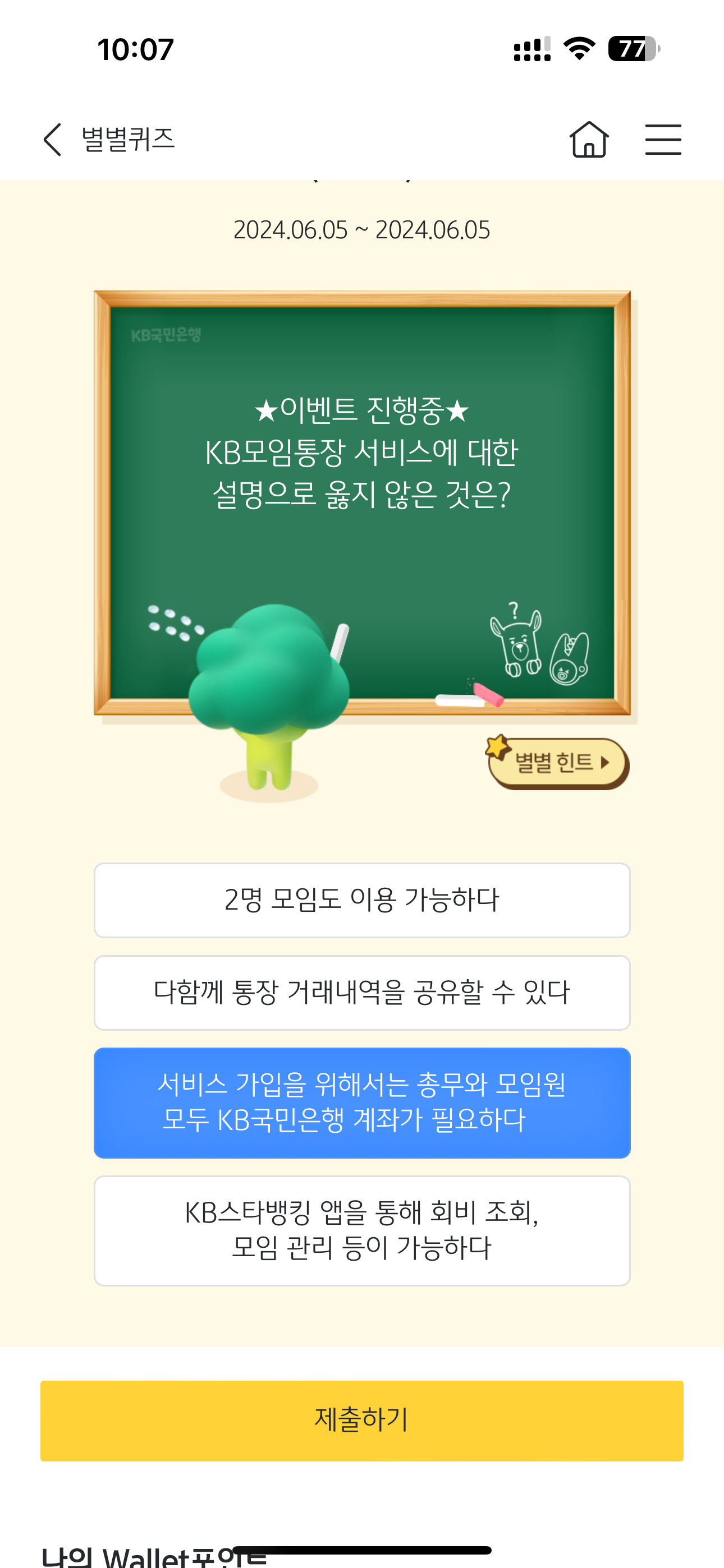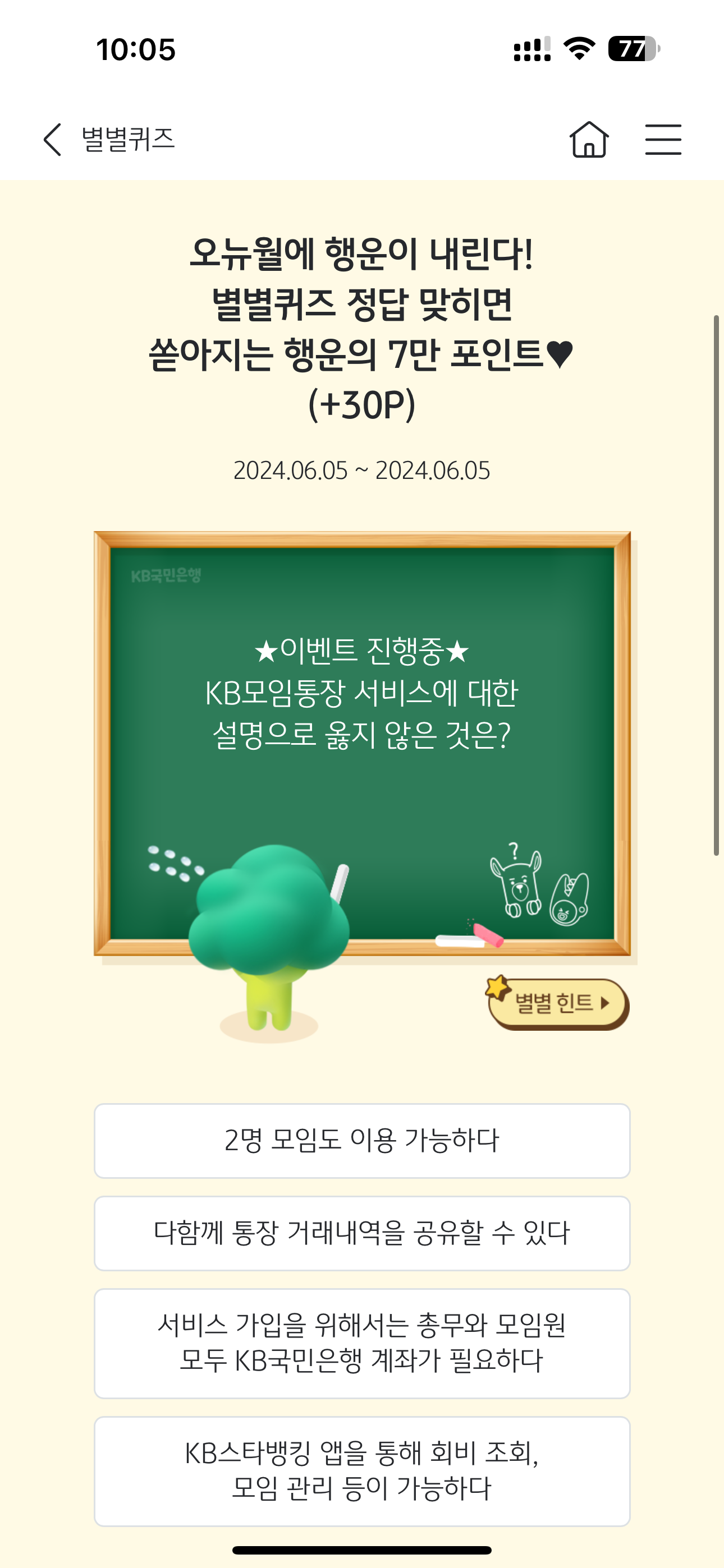 KB스타뱅킹 별별퀴즈 6월 5일 문제입니다