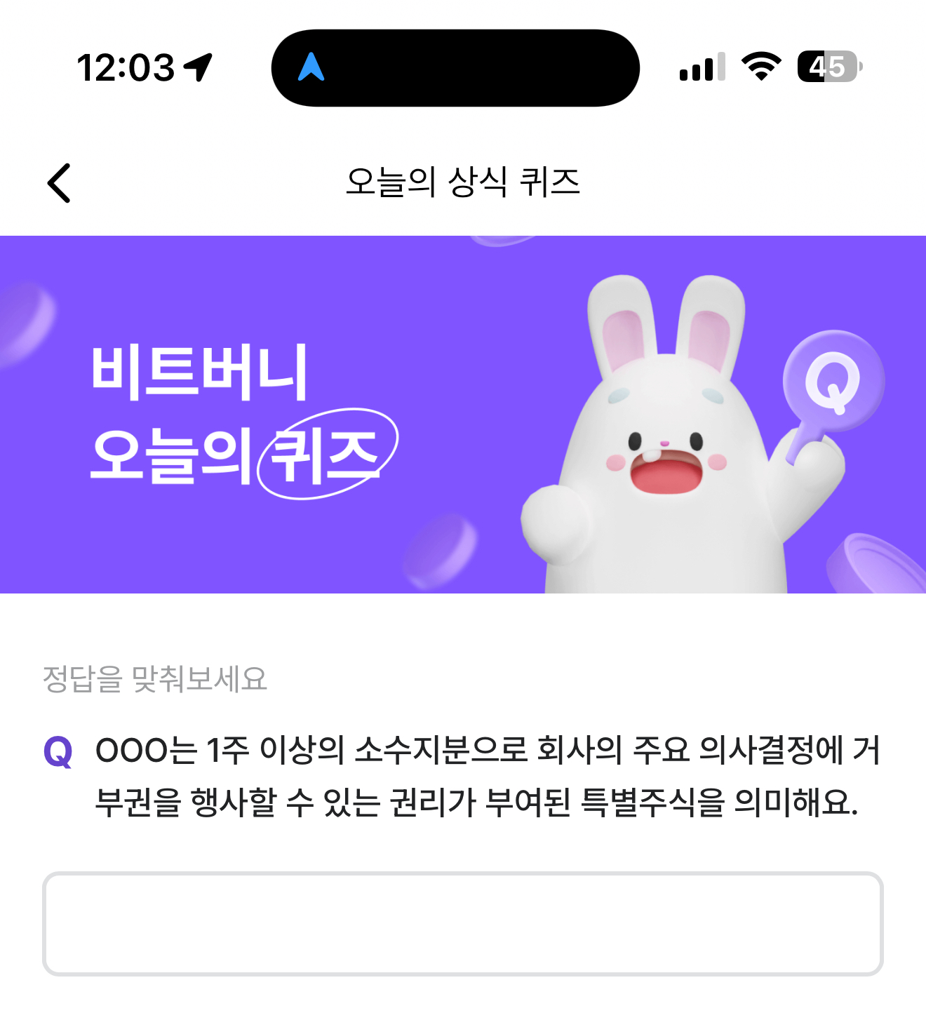 비트버니 오늘의 퀴즈 초성 힌트는 ㅎㄱㅈ 입니다