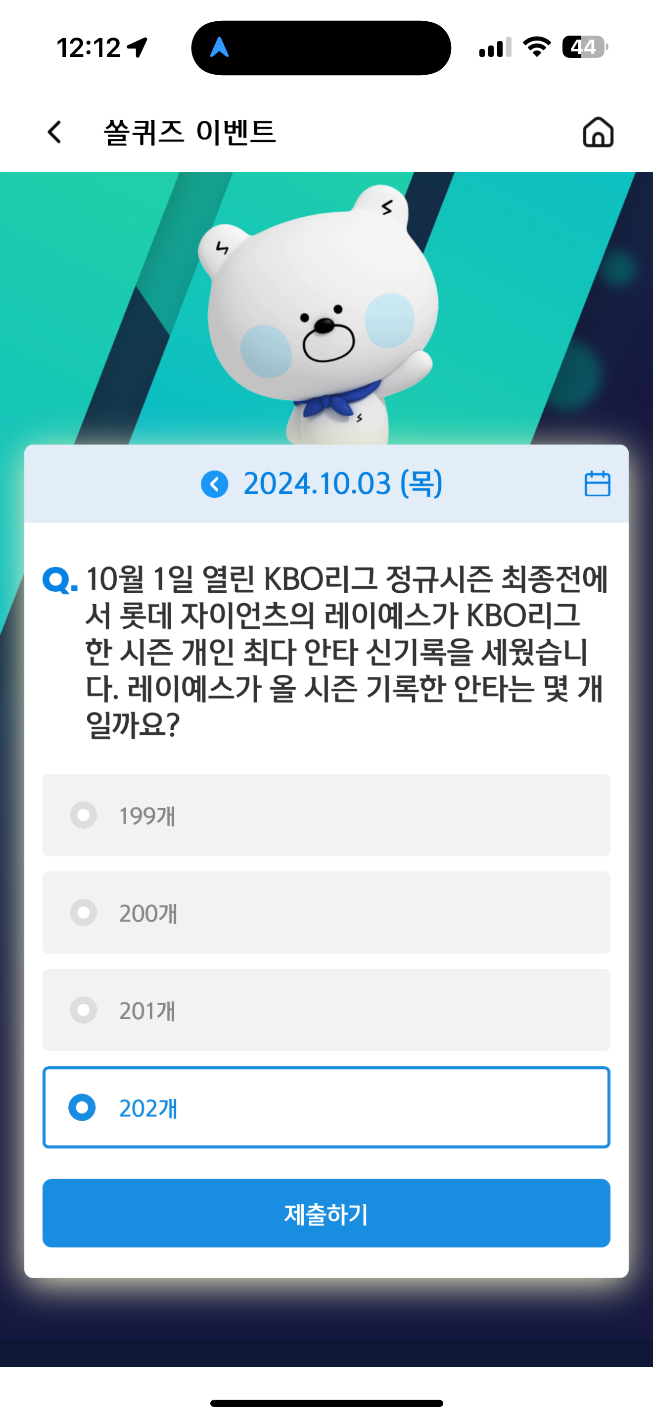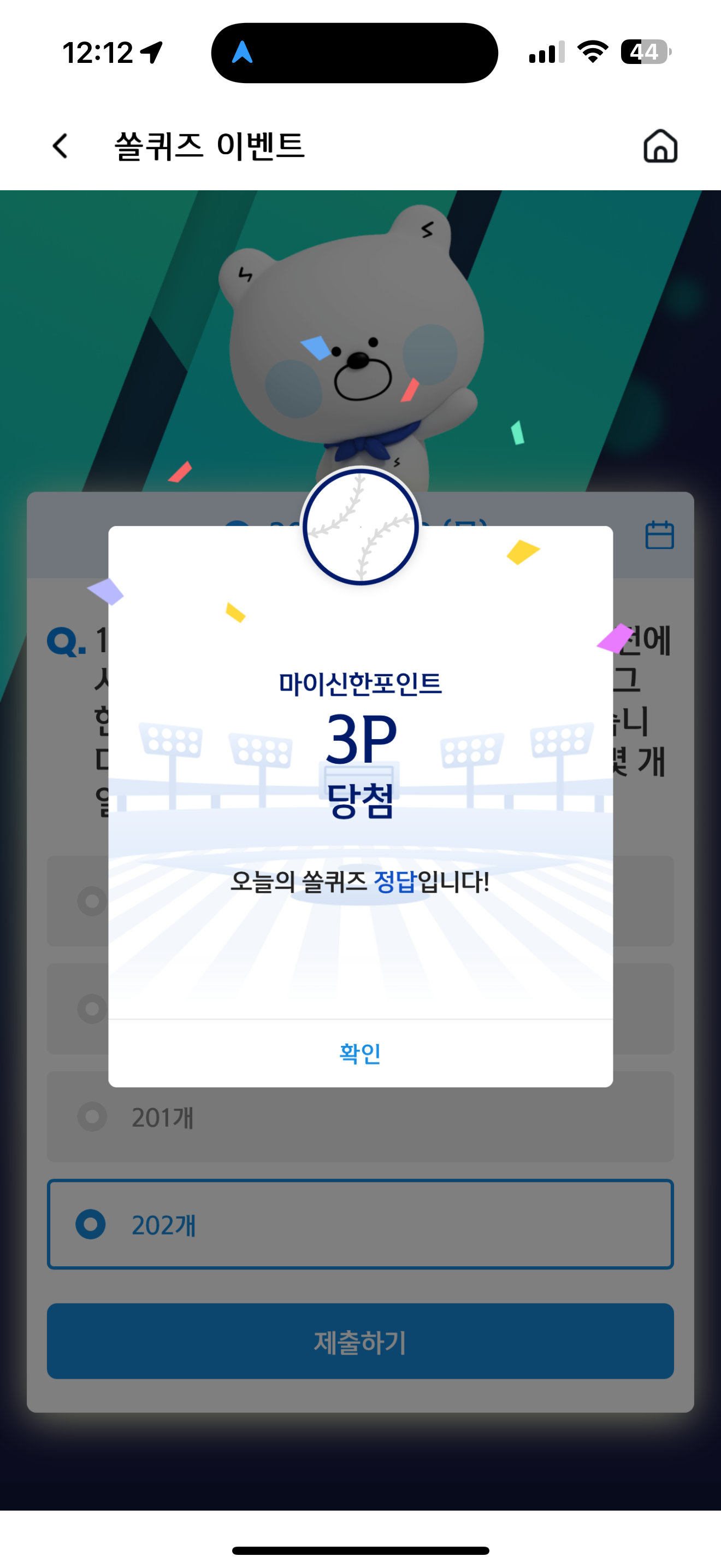 신한 슈퍼SOL 야구/상식 쏠퀴즈 정답은 202개 입니다