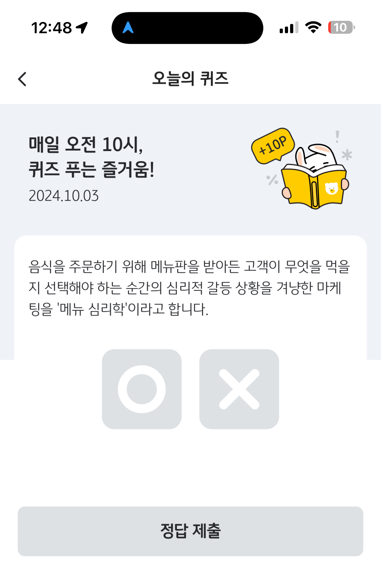 KB Pay 오늘의 퀴즈 10월 3일 정답(음식을 주문하기 위해 메뉴판을 받아든 고객이 무엇을 먹을지 선택해야 하는 순간의 심리적 갈등 상황을 겨냥한 마케팅을 '메뉴 심리학'이라고 합니다)