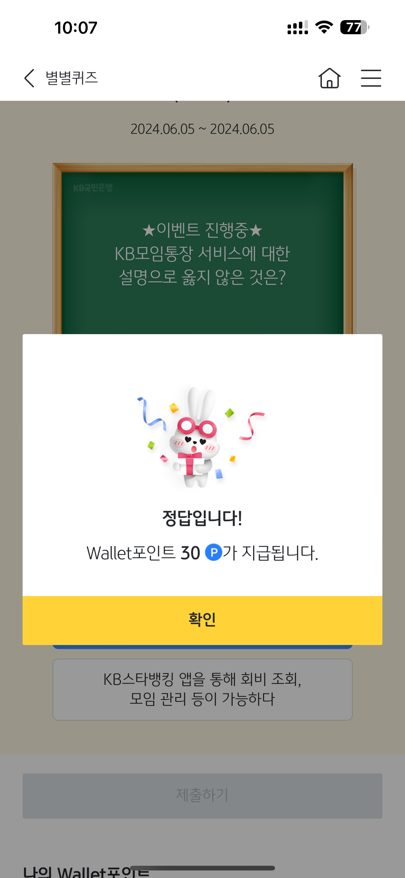 KB스타뱅킹 별별퀴즈 6월 5일 문제입니다