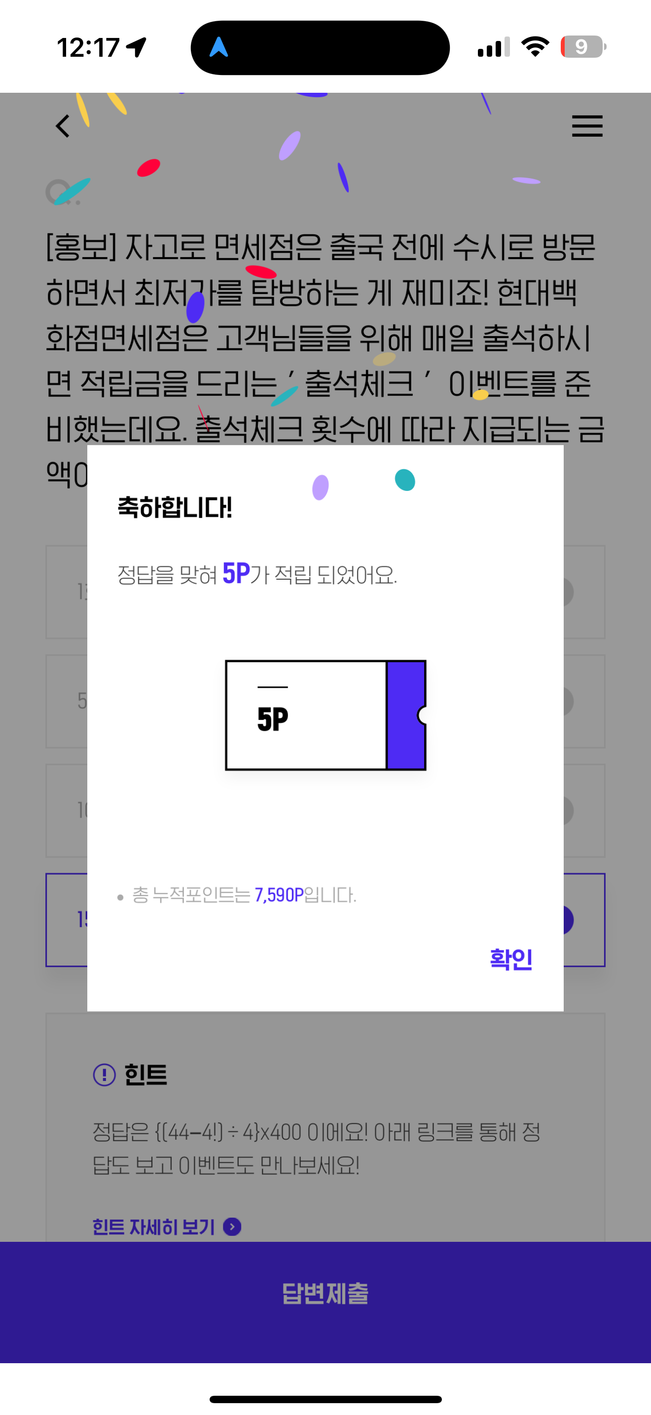 H포인트 퀴즈 정답은 15회 출석 시, 추가 2,000원 입니다