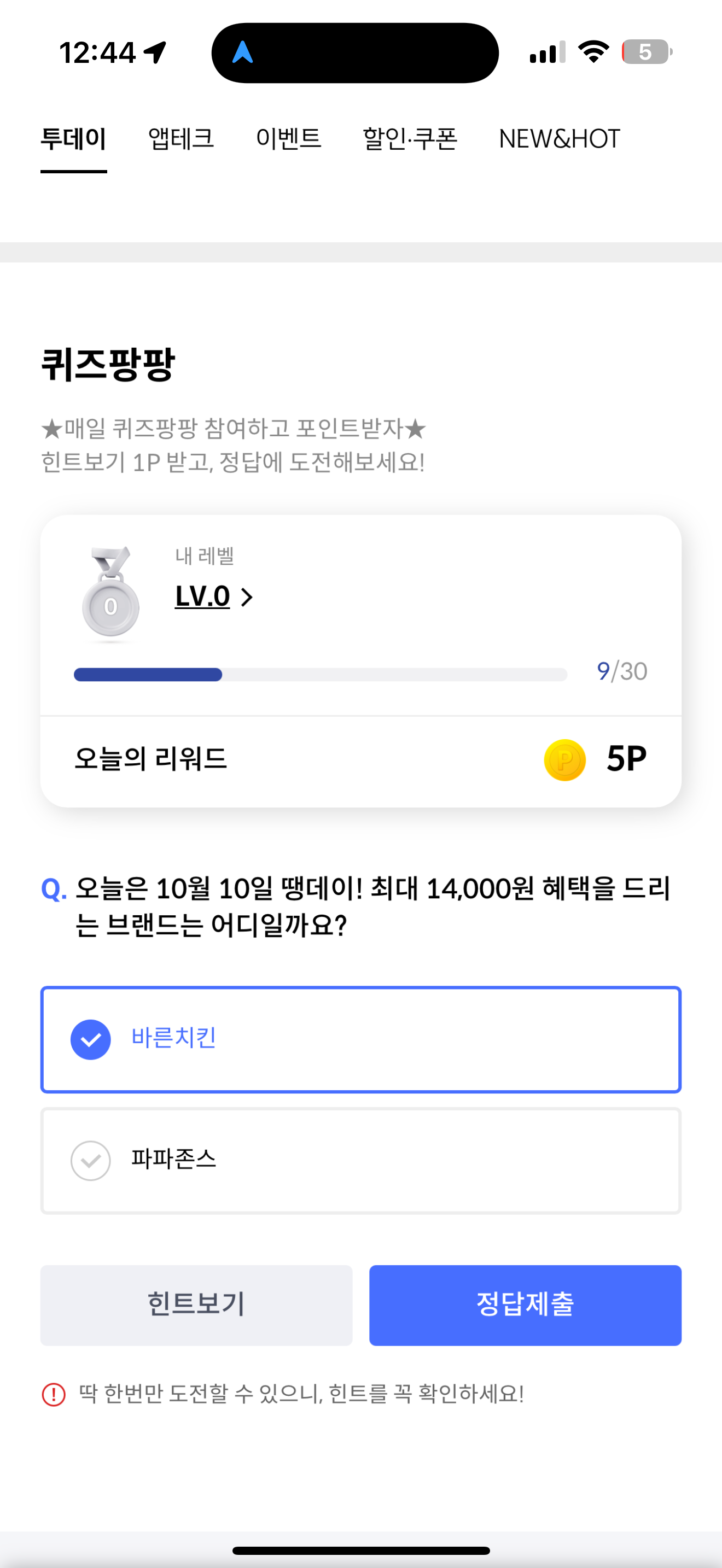 오늘은 10월 10일 땡데이! 최대 14,000원 혜택을 드리는 브랜드는 어디일까요? 보기는 1. 바른치킨 2. 파파존스 입니다. 10월 10일에는 파격적인 14,000원 할인 혜택을 제공하는 브랜드가 있습니다. 특별한 혜택을 받아 저렴하게 이용해 보세요. 난리날 것 같네요