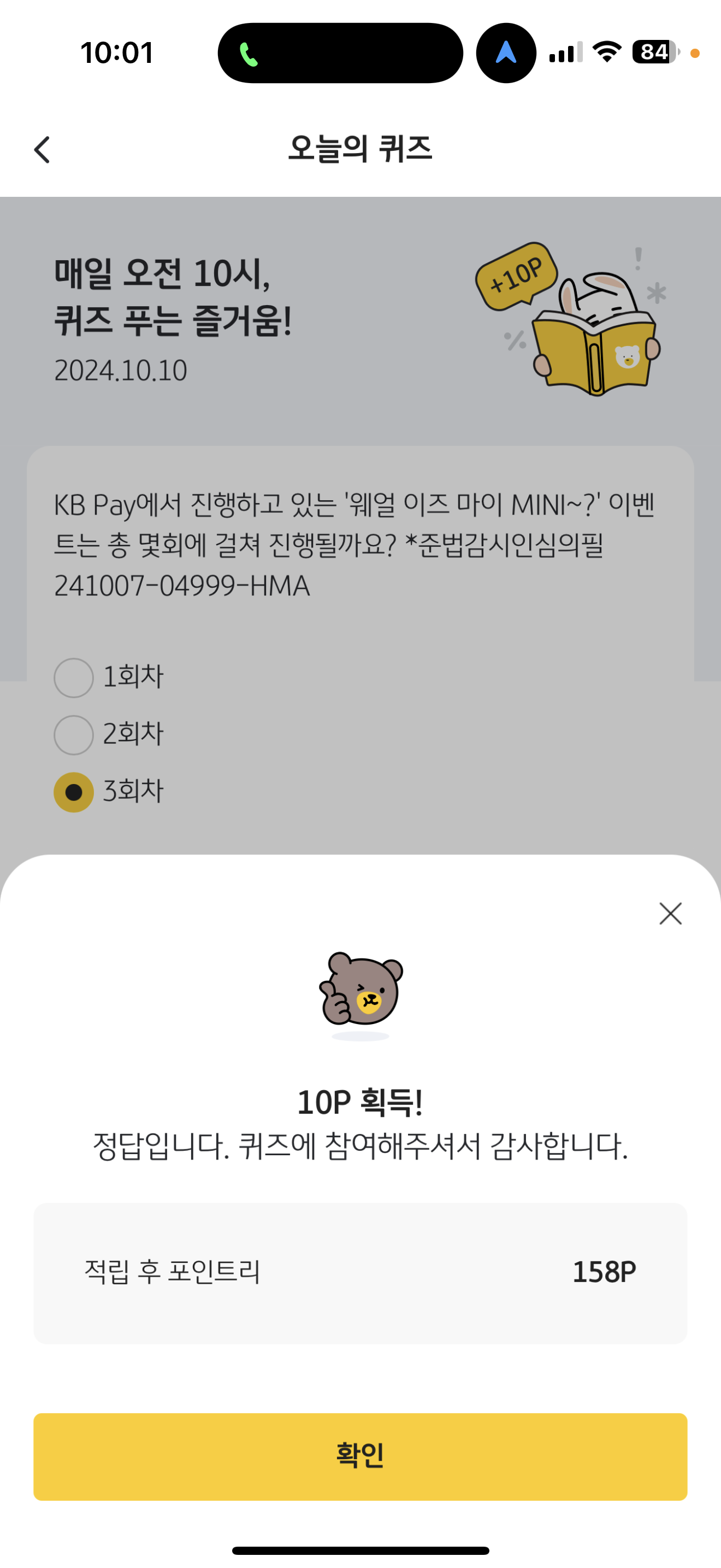 KB Pay 오늘의 퀴즈 정답은 3회차 입니다