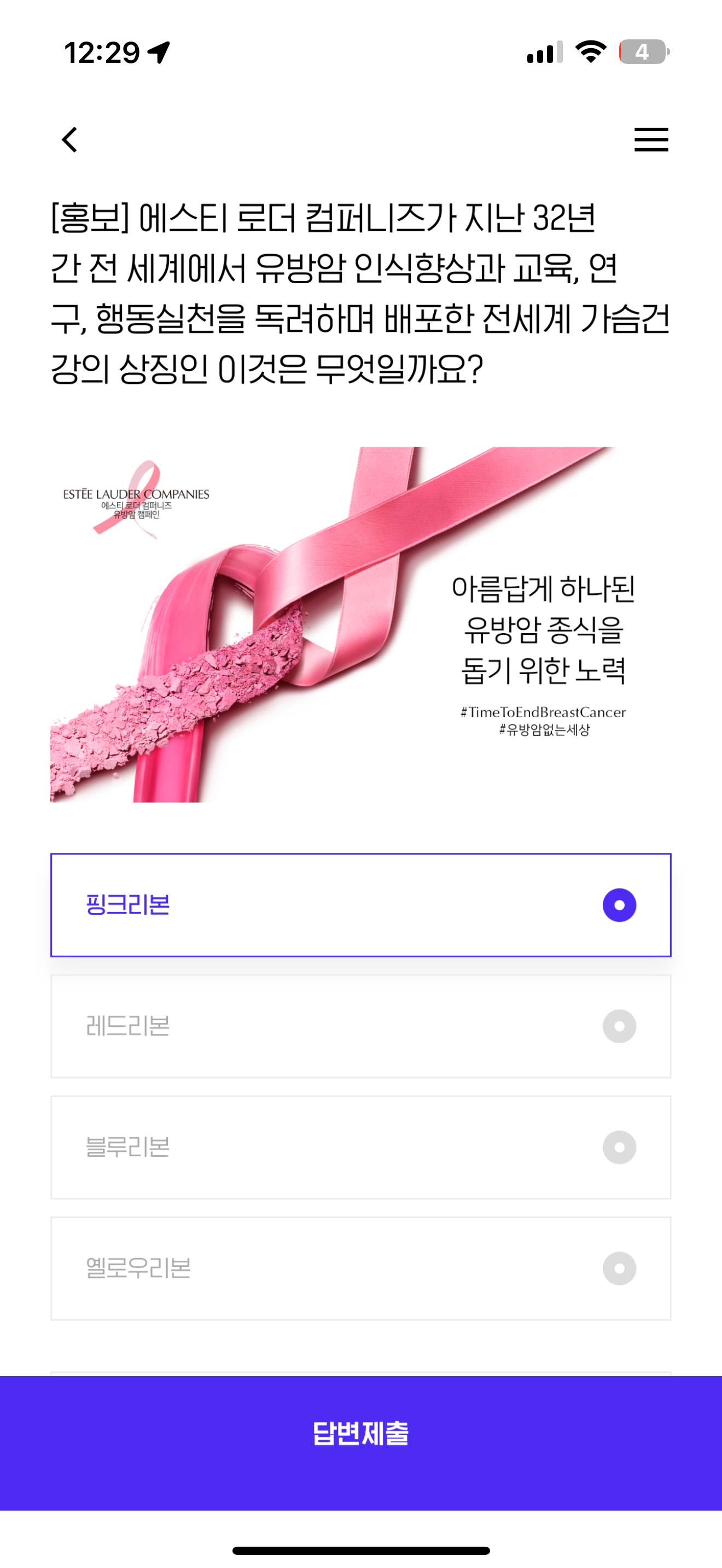 H포인트 퀴즈 정답은 핑크리본 입니다
