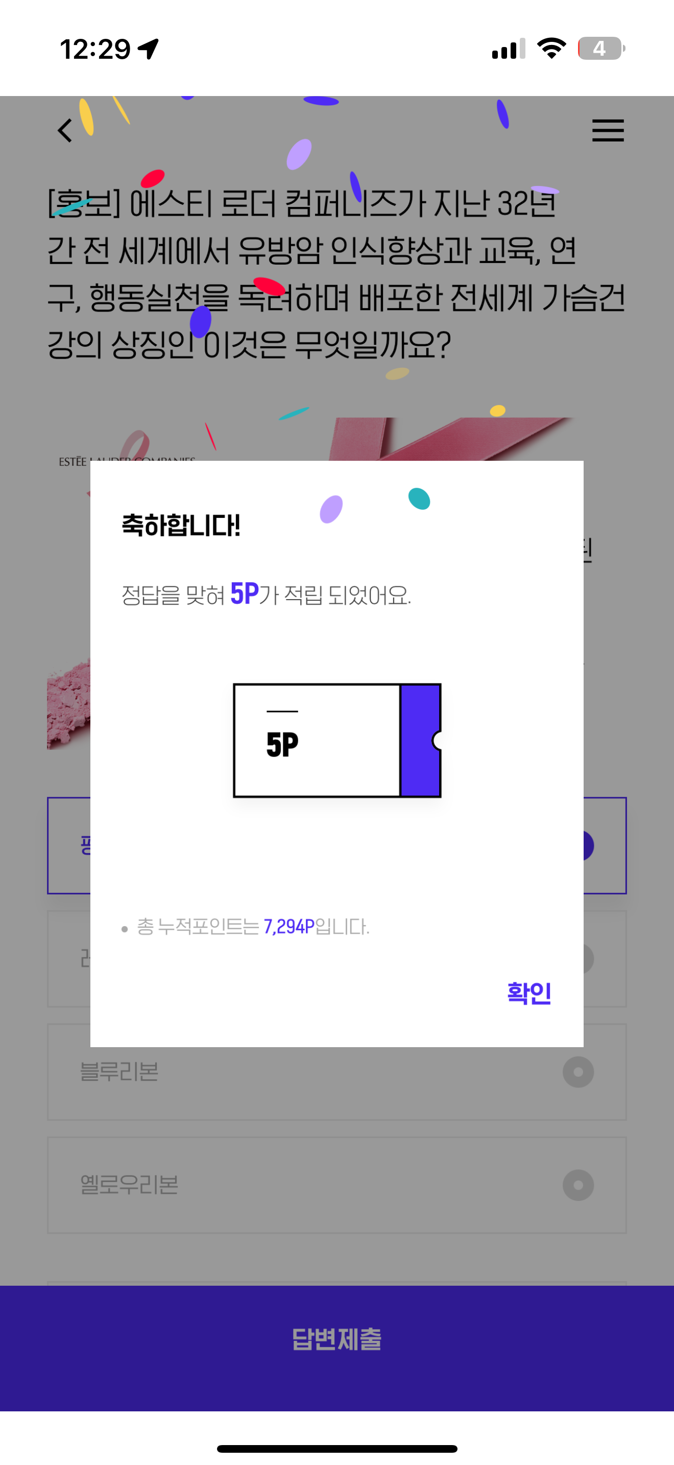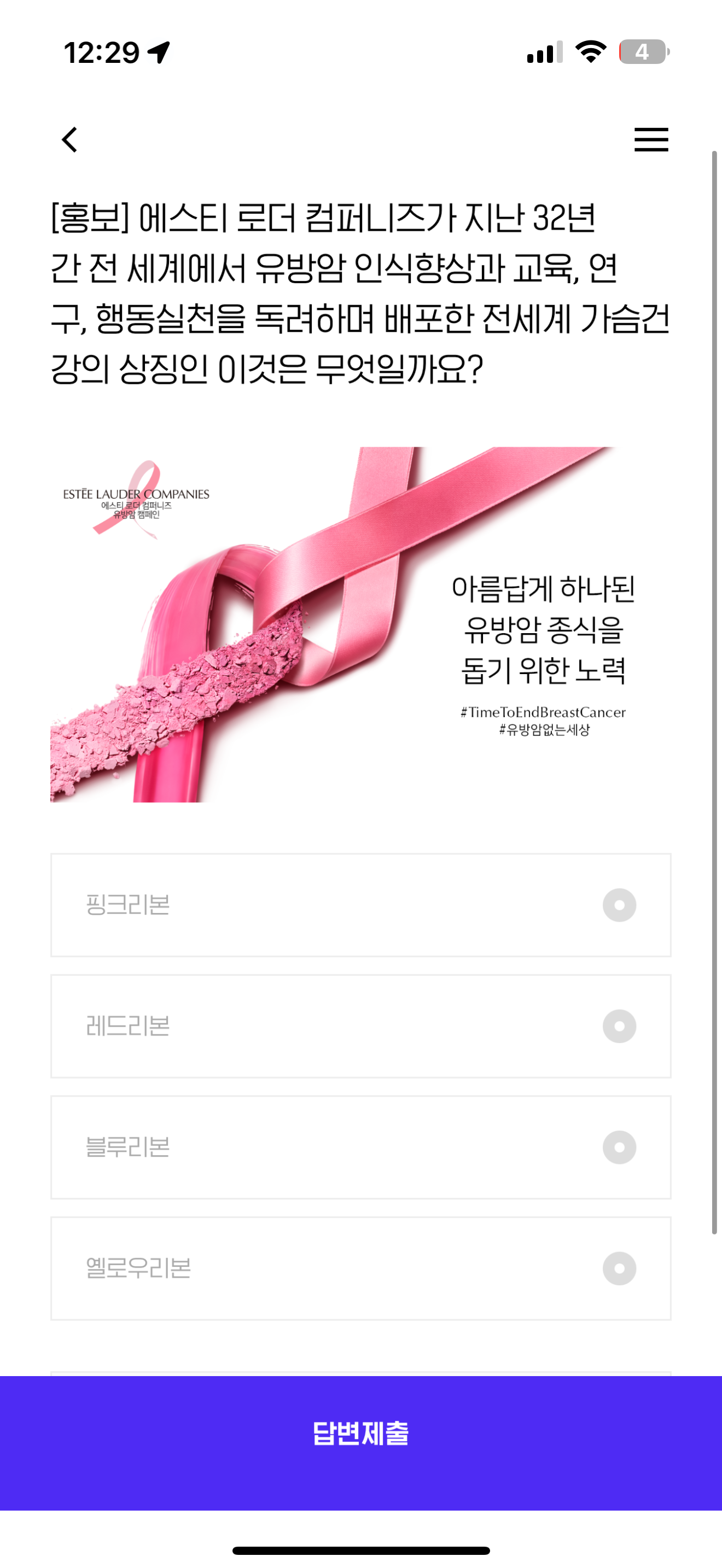 H포인트 퀴즈 정답은 핑크리본 입니다