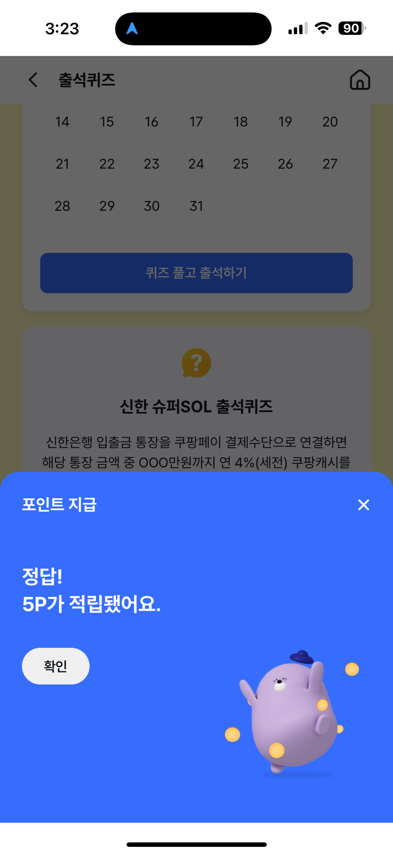 신한 슈퍼SOL 출석퀴즈 10월 11일 문제입니다